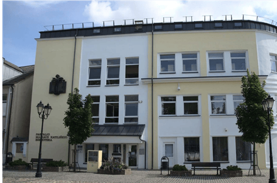 Vytauto Didžiojo aikštėje Nr. 7 yra pastatas. Ant šio pastato sienos yra užrašas PASVALIO MARIAUS KATILIŠKIO BIBLIOTEKA. |