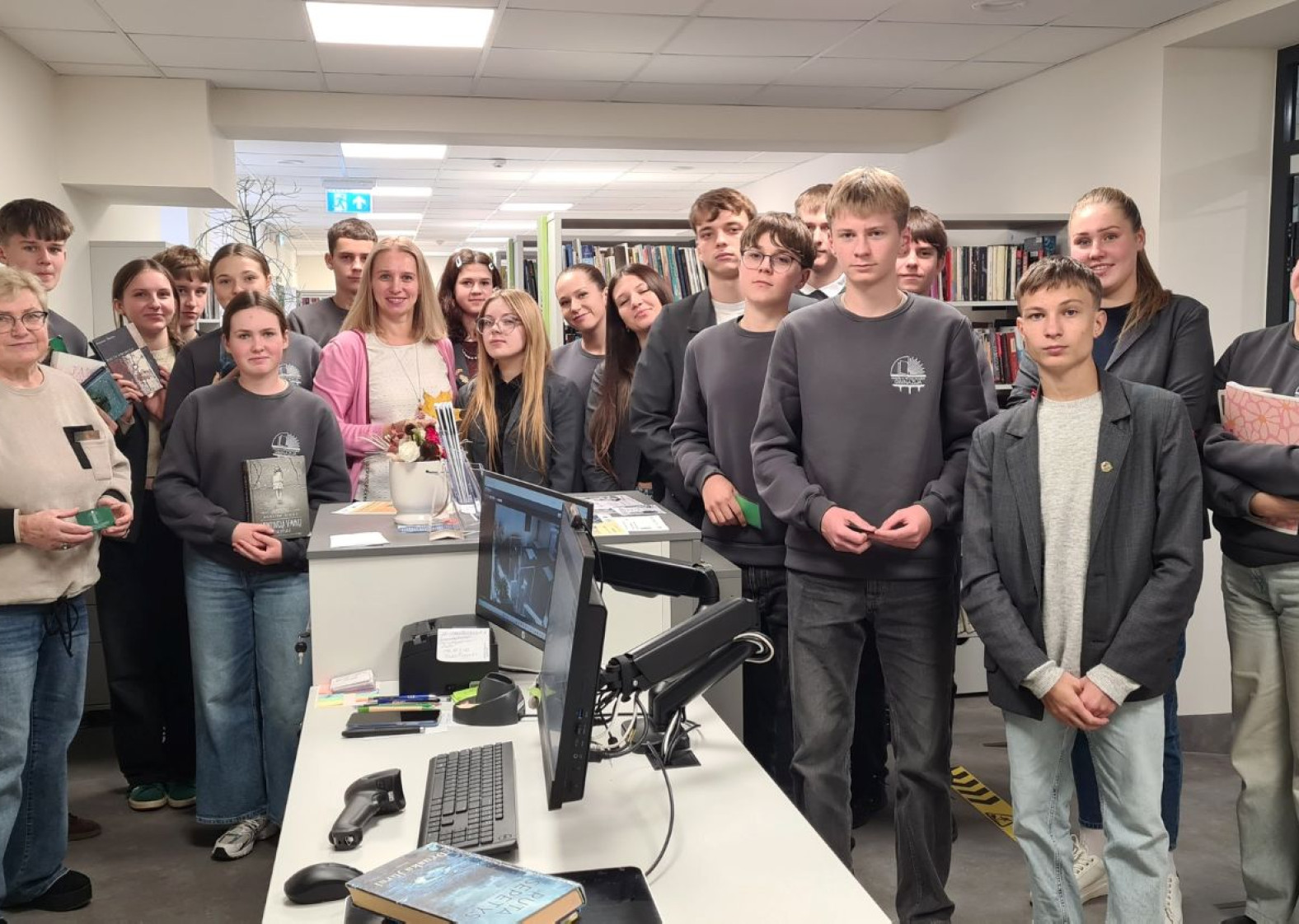 Šiandien bibliotekos Žaliojoje erdvėje lankėsi dvi Pasvalio Petro Vileišio gimnazijos moksleivių klasės su lietuvių kalbos mokytoja Vaida Garbštiene.