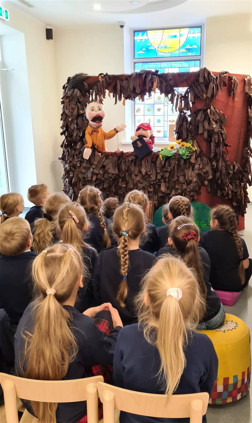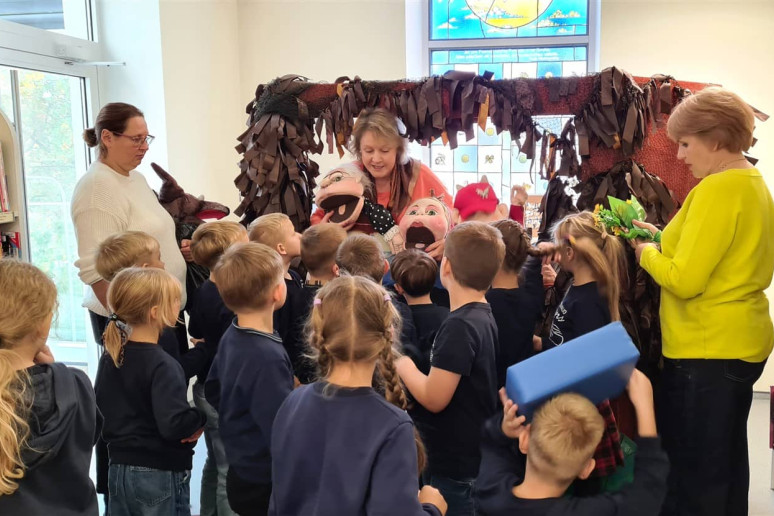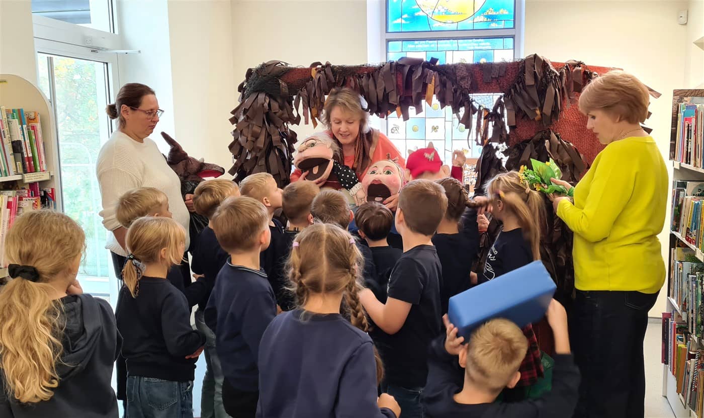 Darbuotojos Lijana ir Dalia svečiams taip pat įgarsino Šarlio Pero pasaką „Raudonkepuraitė“ – ją skaitė ir vaidino, pasitelkdamos vaizdines priemones: specialiai bibliotekos teatro studijai „Kaukutis“ siūtas teatrines lėles (Raudonkepuraitę, mamą, senelę, vilką ir medžiotoją) bei kitas dekoracijas.