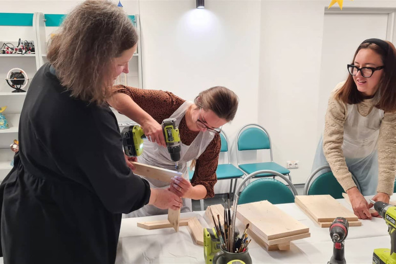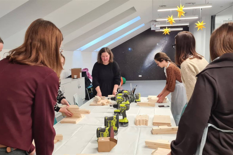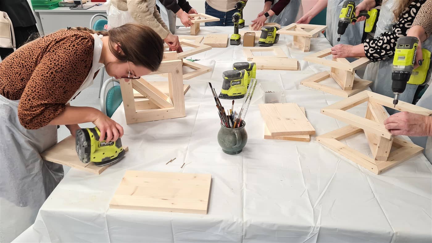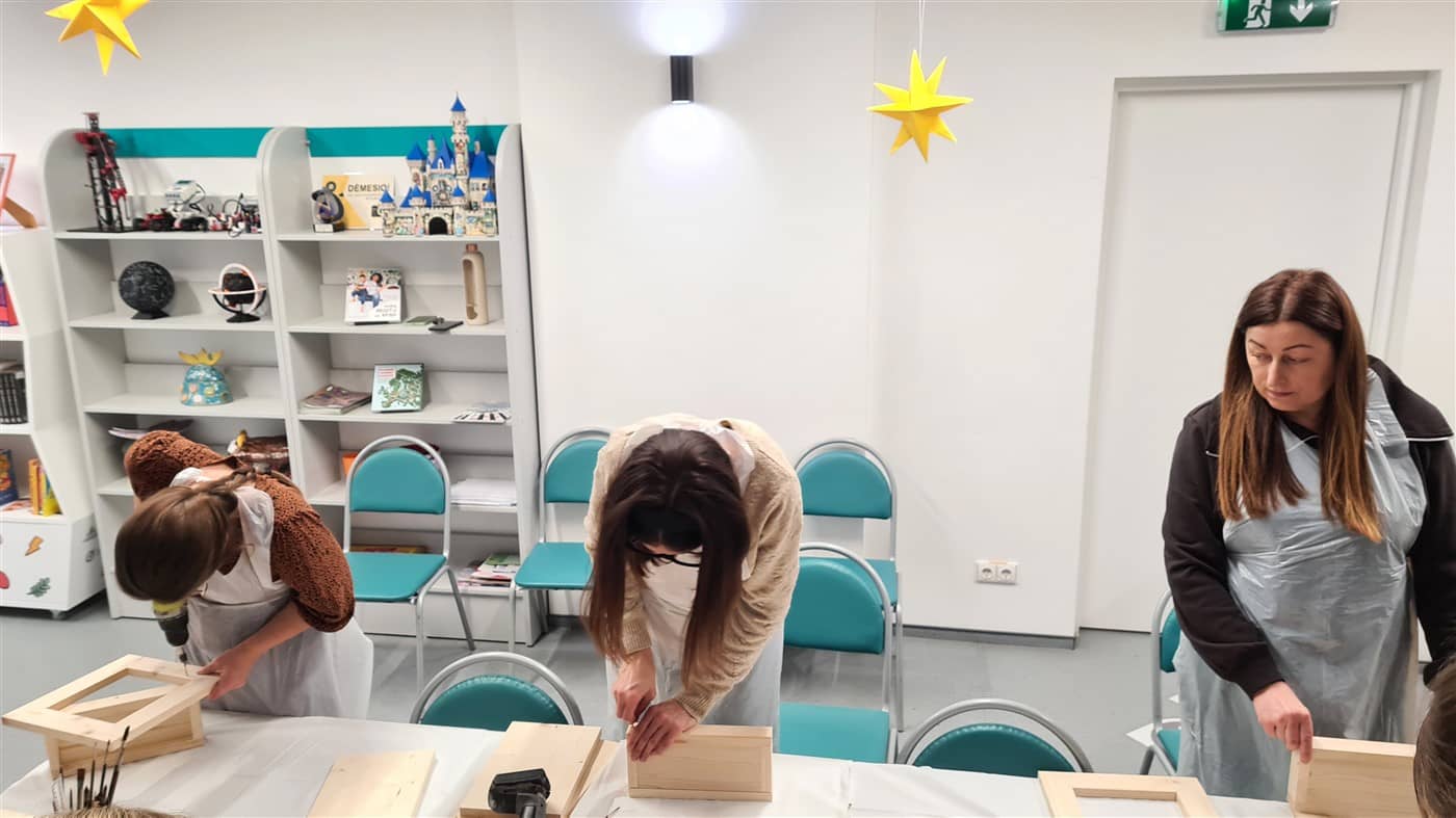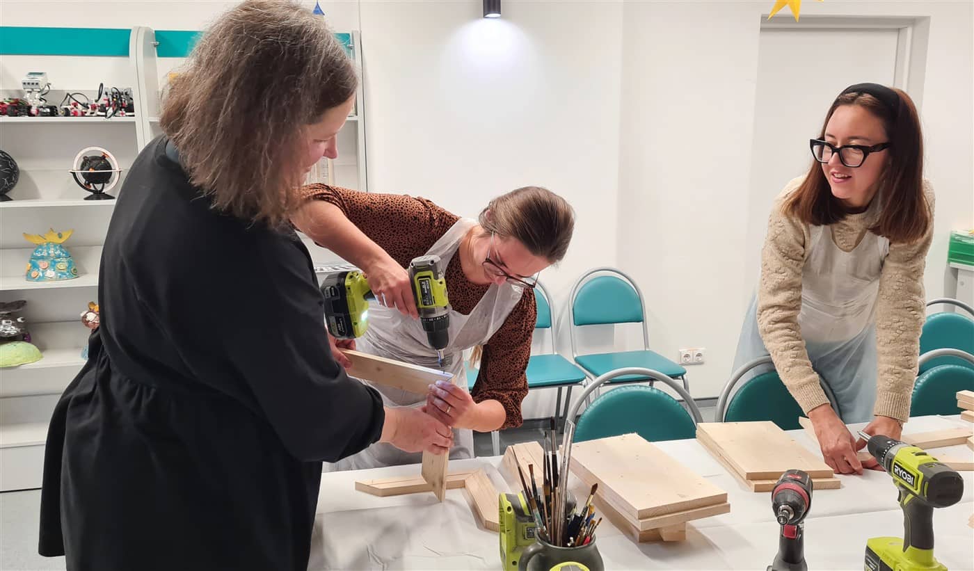 Edukatorė susirinkusiąsias supažindino su naudojamais įrankiais ir parodė, kaip sujungti atskiras medienos ruošinio dalis, jas sutvirtinti ir suformuoti lesyklėlės konstrukciją. Kai lesyklėlės buvo surinktos, dalyvės jas dažė savo pasirinktomis spalvomis. Nudžiuvus dažams, kiekviena dekoravo lesyklėlę akriliniais dažais, kurdama savitą raštą ir detales. Taip buvo sukurti unikalūs darbai, atspindintys kiekvienos dalyvės individualų stilių.