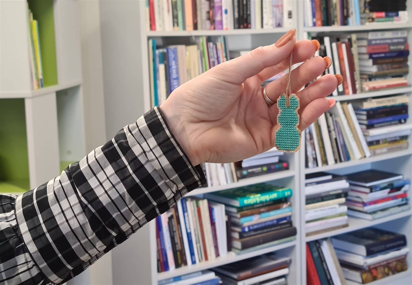 Balandžio 2 d. bibliotekos Kūrybinių dirbtuvių erdvėje vyko edukacija „Velykinis kiškis: siuvinėk pats“, kurią vedė edukatorė Karolina.