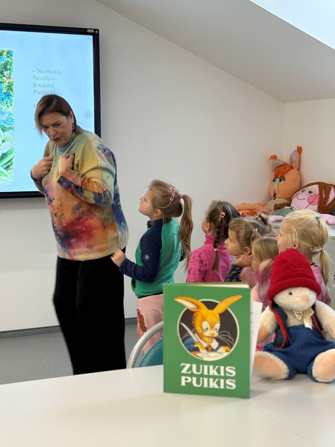 Kūrybos ir edukacijų erdvėje (IV a.) vyko sensoriniai skaitymai pagal poeto Eduardo Mieželaičio knygą „Zuikis Puikis“. Šioje edukacijoje vaikai susipažino su eiliuota pasaka, kurios metu sužinojo apie smagius pagrindinio veikėjo nuotykius. Beje, iš šios istorijos galima pasimokyti, nes joje aprašomos vertybės, kurios išlieka aktualios iki šiol.