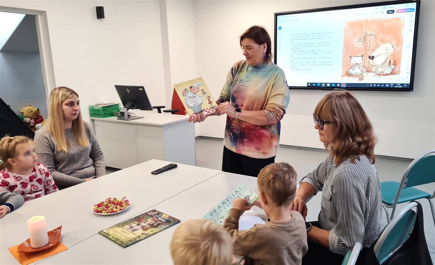 Ta proga mūsų bibliotekos Mokymų ir edukacijų erdvėje vyko dailininko ir rašytojo Bárðuro Oskarssono paveikslėlių knygos „Ein hundur, ein ketta og ein mús“ („Šuo, katė ir pelė“) ištraukos garsinis skaitymas. Ištrauką skaitė, su renginiu supažindino Vaikų erdvės darbuotoja Dalia Šedienė. Dalyvavo Pasvalio lopšelio-darželio „Žilvitis“ vaikai ir juos atlydėjusios auklėtojos.