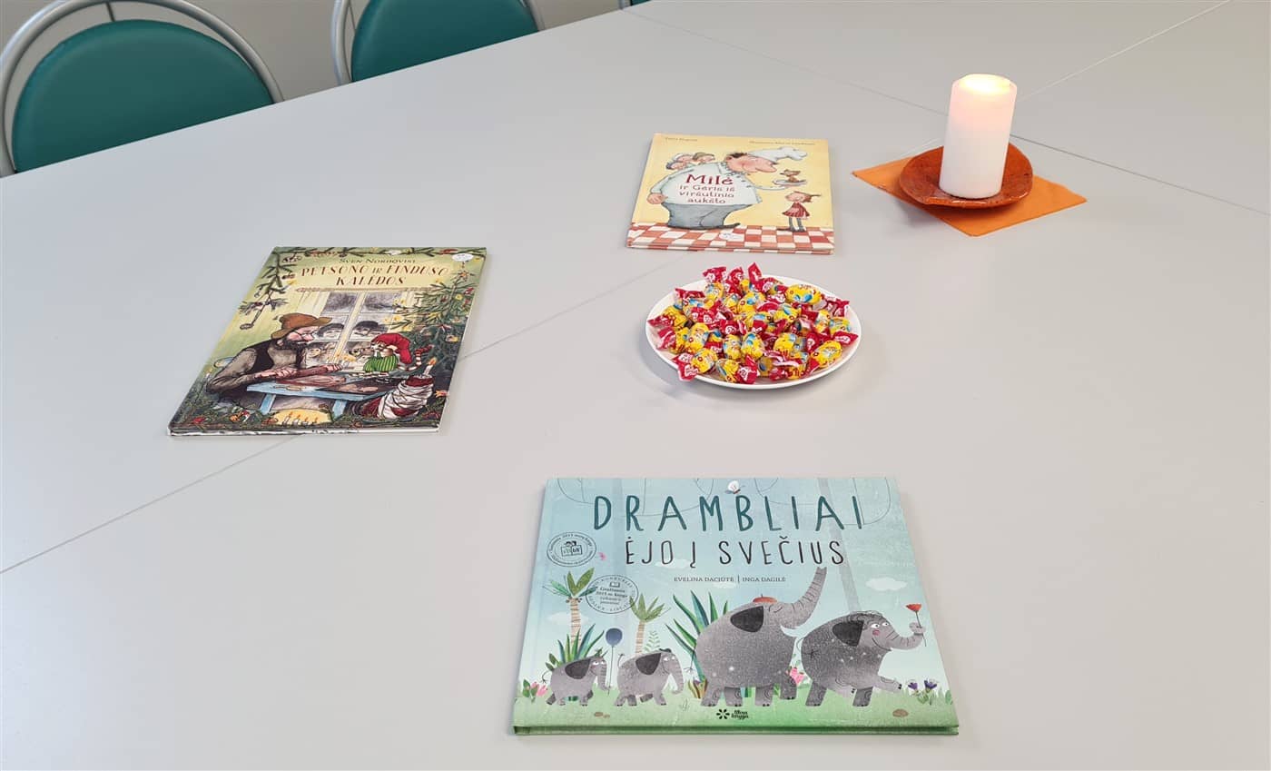 Renginio svečiams taip pat buvo pristatytos trys knygos: Sveno Nordkvisto paveikslėlių knyga „Petsono ir Finduso Kalėdos“, Tiinos Nopolos „Milė ir Gėris iš viršutinio aukšto“ bei Evelinos Daciūtės ir Ingos Dagilės knygelė „Drambliai ėjo į svečius“.