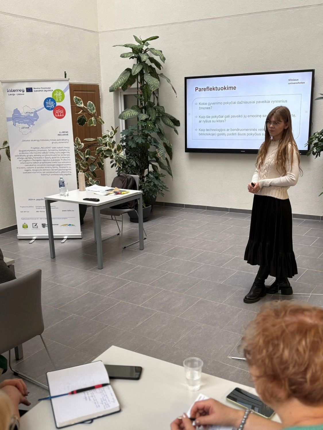 Spalio 28 dieną mūsų bibliotekos padalinių darbuotojai dalyvavo projekto „INCLUSIVE“ mokymų apie darbą su senjorų tiksline grupe tęsinyje, mokymuose „Darbas su vyresnio amžiaus žmonėmis: gyvenimo pokyčiai, praktinė komunikacija, edukacinės priemonės, mokymasis ir technologijos“, kuriuos vedė Vilniaus universiteto Psichologijos instituto asistentė dr. Viktorija Azuma.