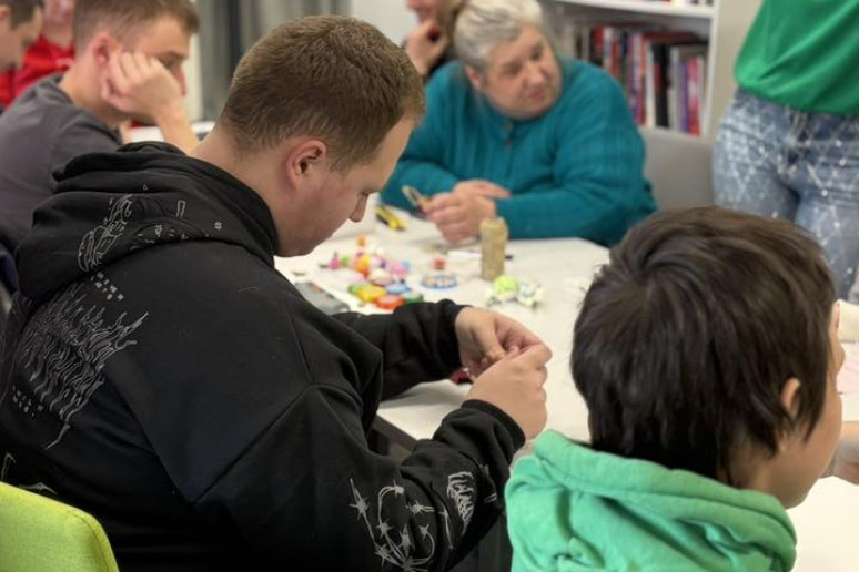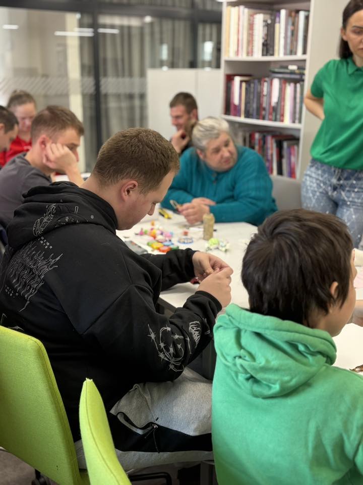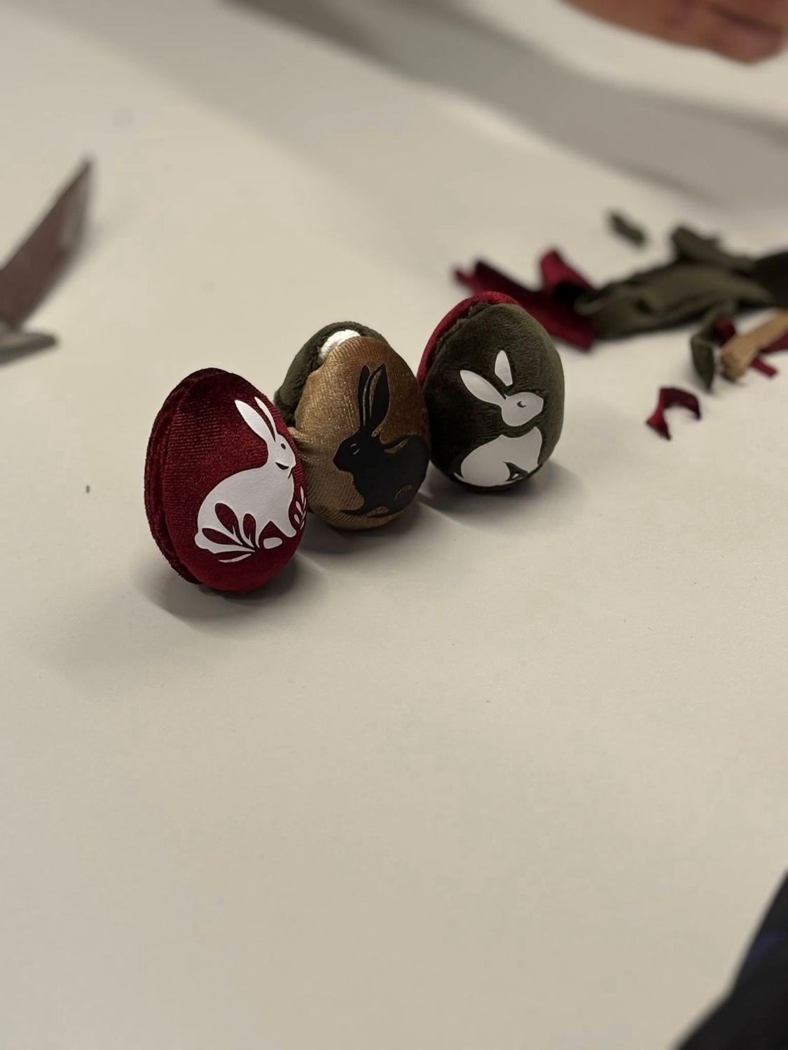 Dirbtuvėse jie dekoravo putplasčio kiaušinius, naudodami savo atsineštas medžiagas ir paruoštas priemones. Ant stalų netrūko spalvų, audinių ir kaspinų, o kūrybinis procesas visus įtraukė ir suteikė daug gerų emocijų.