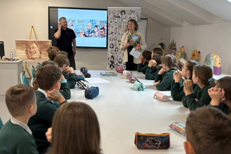 Menininkas pasakojo apie savo kūrybinius projektus – nuo knygų iliustracijų iki freskų tapybos, paminėdamas ir vieną iš darbų Pasvalio Šiaurės aruoduose. Ypač daug smalsumo sulaukė šaržų piešimas – vaikai stebėjo, kaip gimsta juokingi, bet taiklūs portretai, spėliojo, kuris klasės draugas pavaizduotas, ir diskutavo apie išskirtinius bruožus. Gintaras Jocius paaiškino, kad nors kai kurie veido bruožai, pavyzdžiui, akių dydis, keičiasi labai nežymiai, kiti bruožai – formuojasi, kinta labiau.