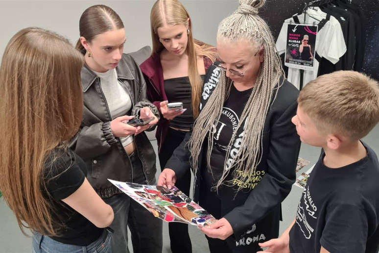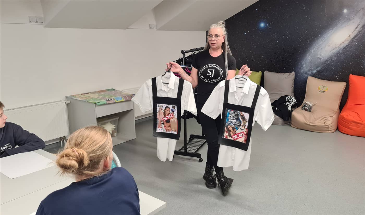 Vėliau kūrybinį iššūkį priėmė ir patys moksleiviai. Edukatorė jiems pateikė užduotį – sukurti tris stilius: gatvės, dalykinį ir proginį, kurie atspindėtų jų draugų ar kitų pasirinktų žmonių asmenybes. Visi šie įvaizdžiai buvo pristatyti gyvai – juos pademonstravo SJ modelių studijos modeliai Viltė, Mėta ir Andrėja.