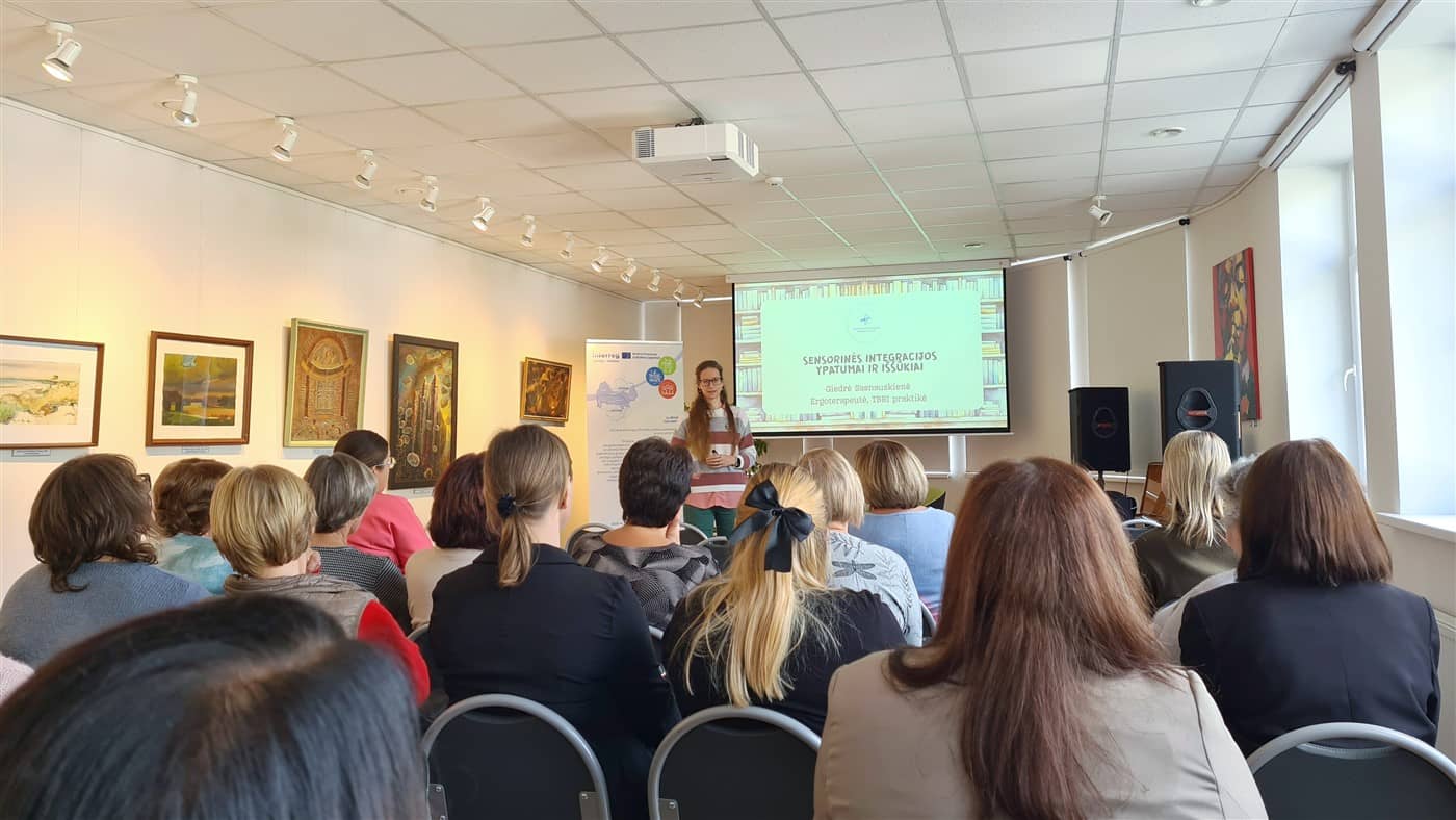 Antroje dalyje vyko gerųjų INCLUSIVE patirčių pasidalinimo renginys. Sensorinės integracijos specialistė Giedrė Sasnauskienė skaitė pranešimus („Sensorinės integracijos ypatumai ir iššūkiai“, „Sensorinius poreikius atliepianti ir lengvai prieinama aplinka“, „Traumai jautrių strategijų taikymas šiuolaikinės bibliotekos aplinkoje“ ir „Sensorinių pasakų ar istorijų kūrimas“). Šioje dalyje dalyviai taip pat atliko praktines užduotis ir pasidžiaugė jų rezultatais. Džiaugiamės išsamiu lektorės temų pristatymu ir tikimės, kad įgytos žinios bus sėkmingai pritaikytos mūsų bibliotekoje ir jos padaliniuose.