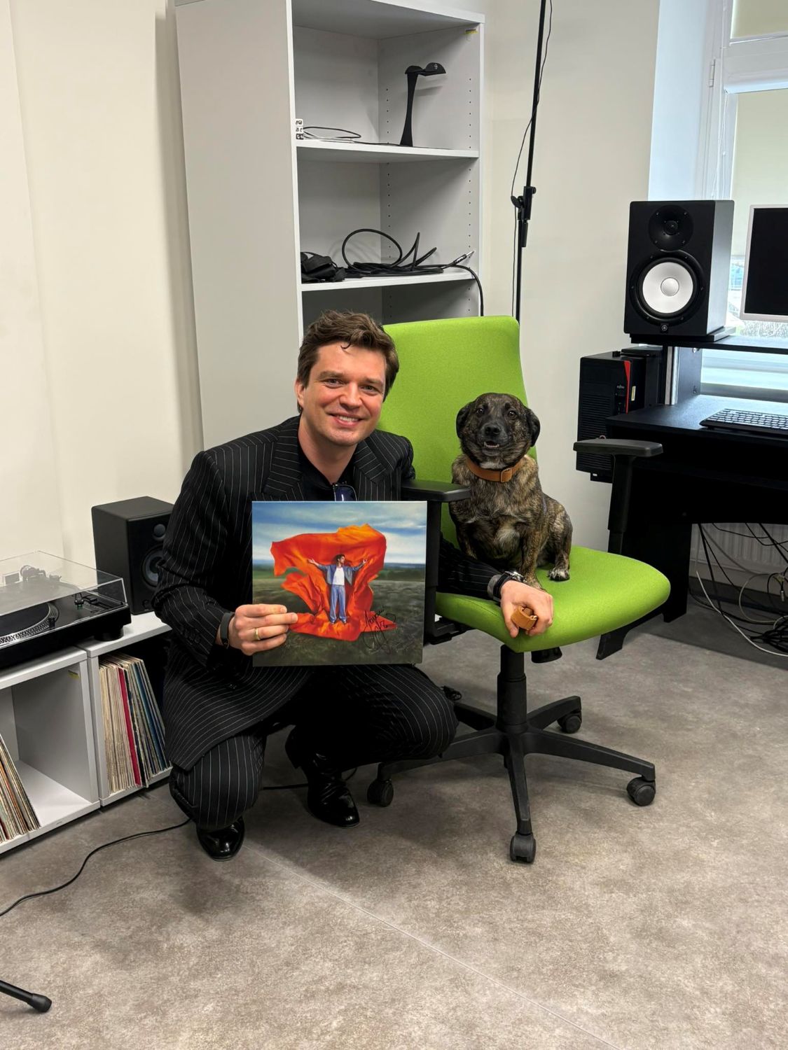 Vizito Pasvalyje metu Jonas Nainys, bibliotekos globėjas, kartu su savo kelionių palydovu Bruno apsilankė bibliotekoje ir Garso vaizdo įrašų studijoje, kur paliko pasirašytą savo vinilinę plokštelę.