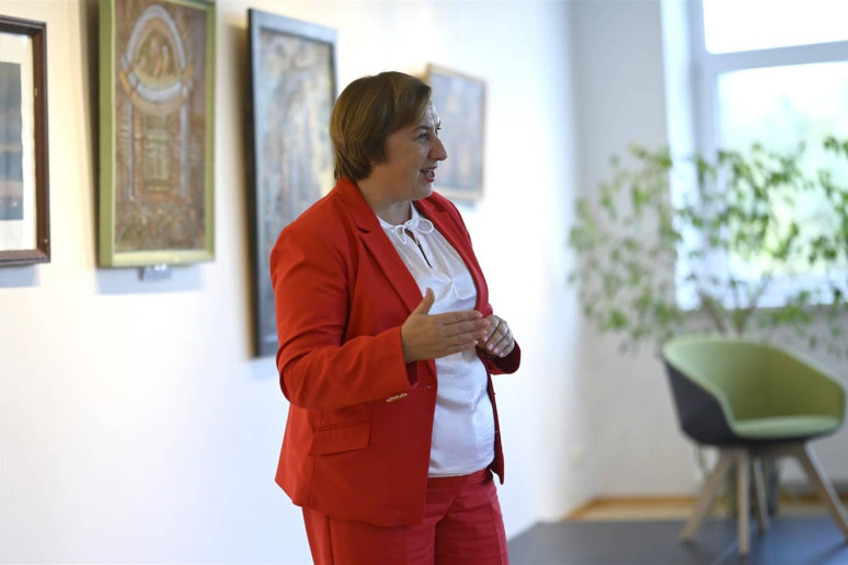 Bibliotekos Vartotojų aptarnavimo centro vedėja Kristina Gasiliūnė trumpai pristatė jubiliejinę parodą ir kvietė tarti žodį Pasvalio Petro Vileišio gimnazijos direktorę Gitaną Kruopienę.