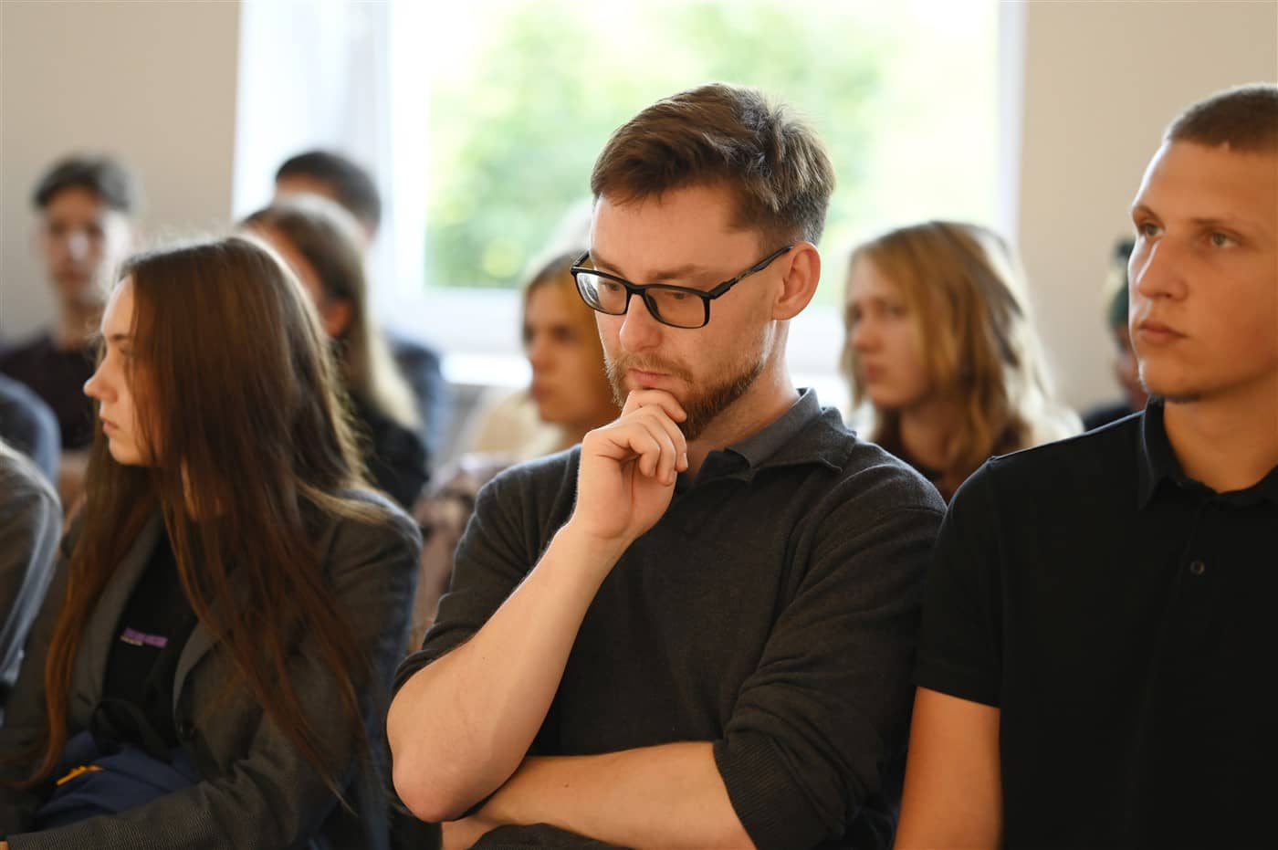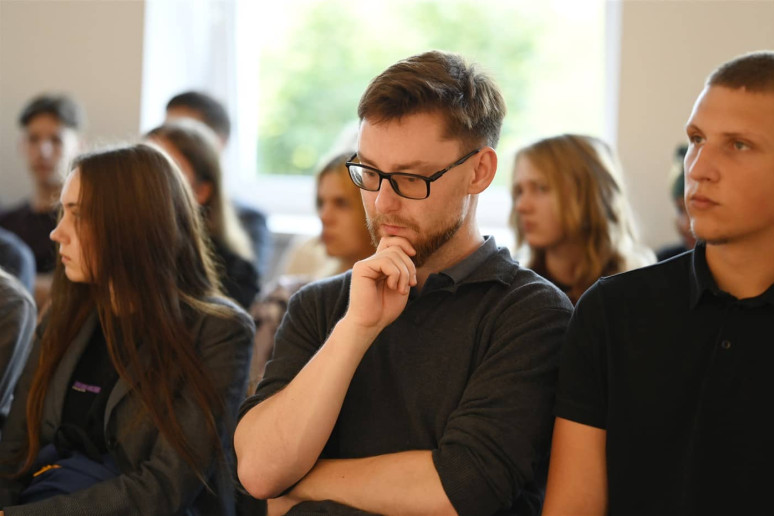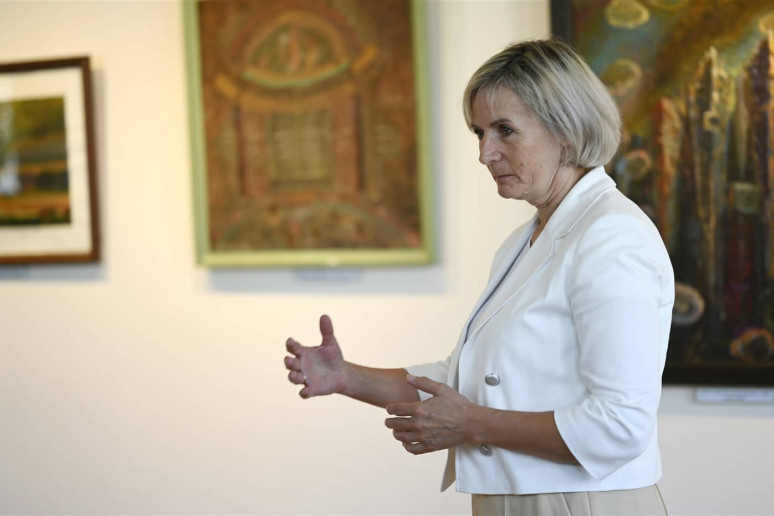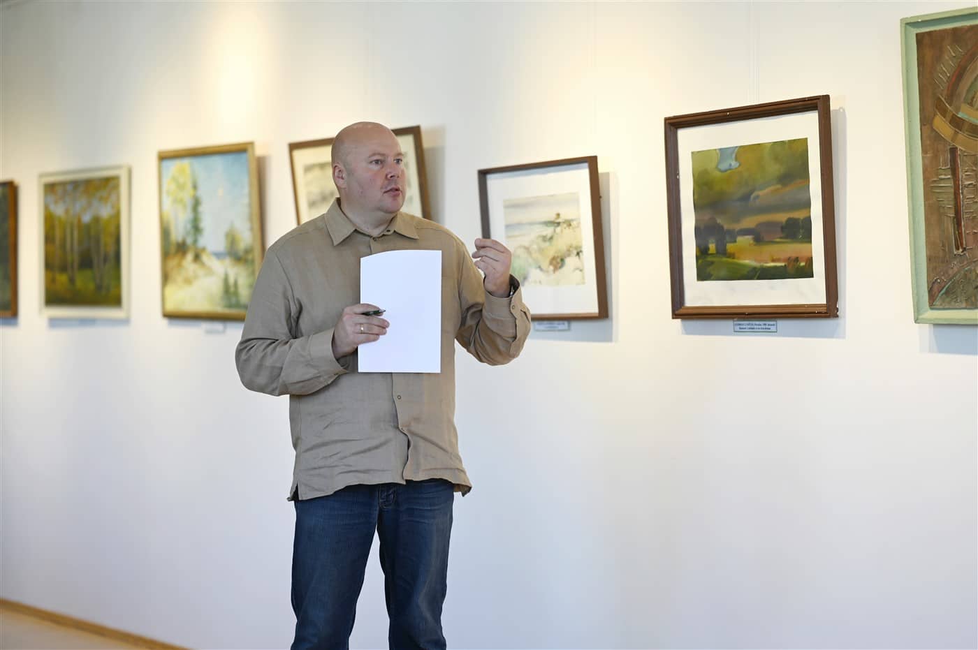 Dailės, technologijų mokytojas Vytautas Stravinskas trumpai aptarė paveiksluose vyraujančius motyvus, naudotas technikas, spalvinius sprendimus bei kūrėjų braižo kaitą. Direktoriaus pavaduotoja ugdymui Loreta Liukpetrienė akcentavo paveikslų poveikį moksleivių emocinei gerovei – jie puošia sielą, ramina, įkvepia ir padeda susitvarkyti su neigiamomis emocijomis.