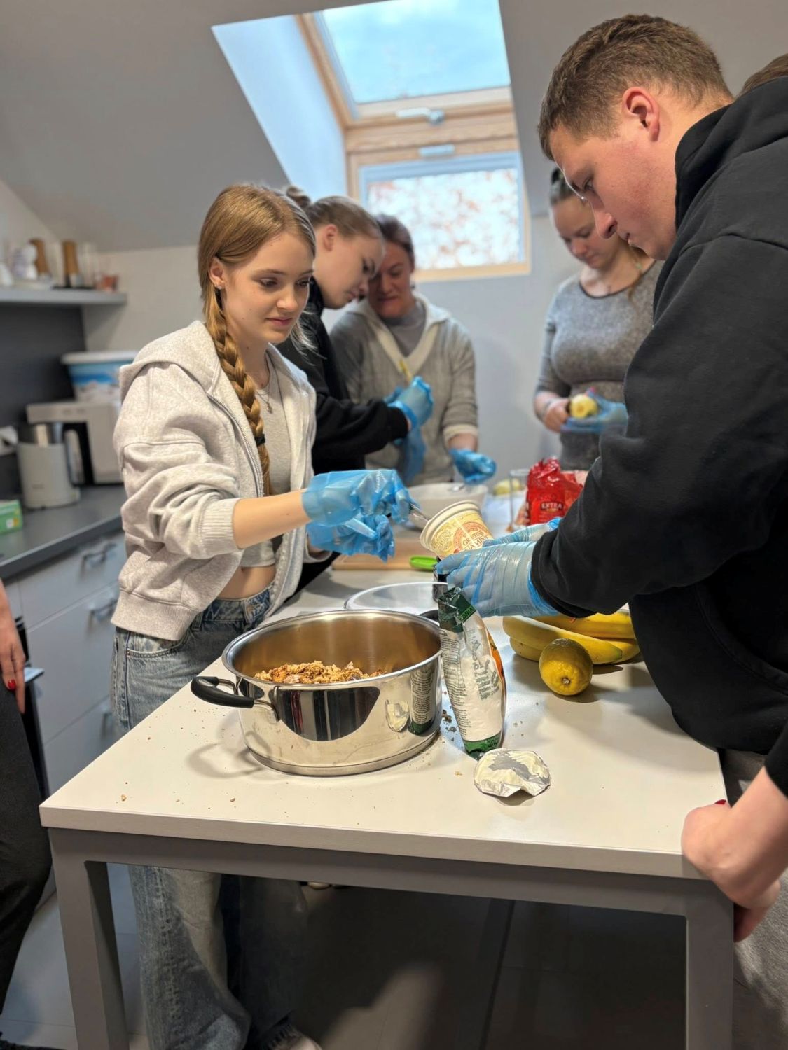 Minėdami Pyragų dieną, kartu gaminome nekeptą meduolių pyragą su bananais ir kepėme kvapnų obuolių pyragą. Kol pyragai kepė ir skleidė jaukų aromatą, visi dalyviai įsitraukė į edukaciją „Pasigamink atšvaitą pats“. Dirbtuvių metu jie sužinojo, kodėl svarbu nešioti atšvaitus, kaip juos tinkamai naudoti, o galiausiai – pasigamino atšvaitus sau.