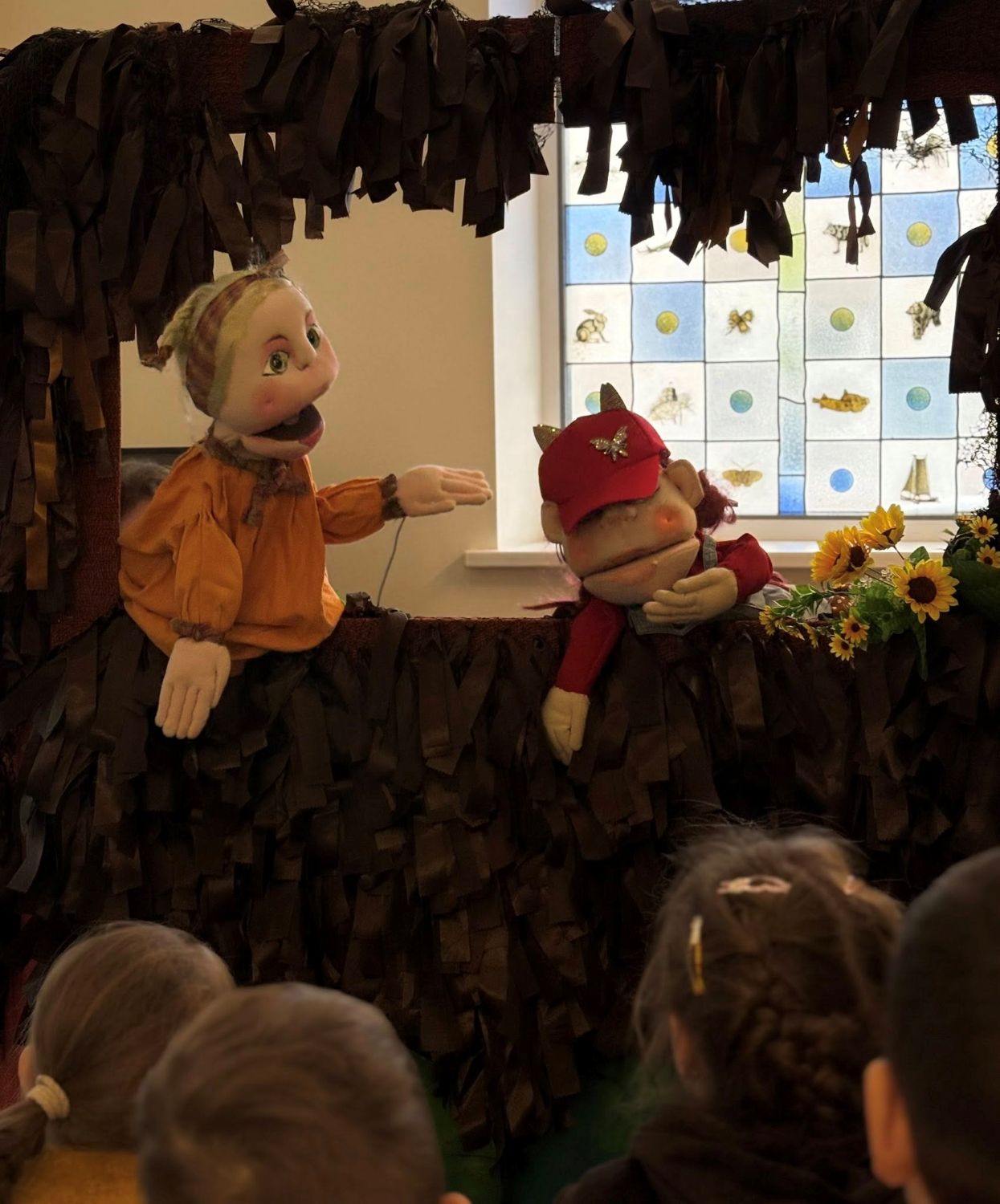Darbuotojos Lijana ir Dalia ją skaitė ir vaidino, pasitelkdamos vaizdines priemones – specialiai bibliotekos teatro studijai „Kaukutis“ siūtas teatrines lėles (Raudonkepuraitę, mamą, senelę, vilką ir medžiotoją) bei kitas dekoracijas. Šis užsiėmimas ugdo vaikų kūrybinį potencialą, puoselėja saviraiškos ir kūrybos gebėjimus, meno pagalba ugdomas poreikis bendrauti ir bendradarbiauti. Ugdomas kritinis mąstymas ir gebėjimas atpažinti teigiamo elgesio naudą, skirti gėrį nuo blogio.