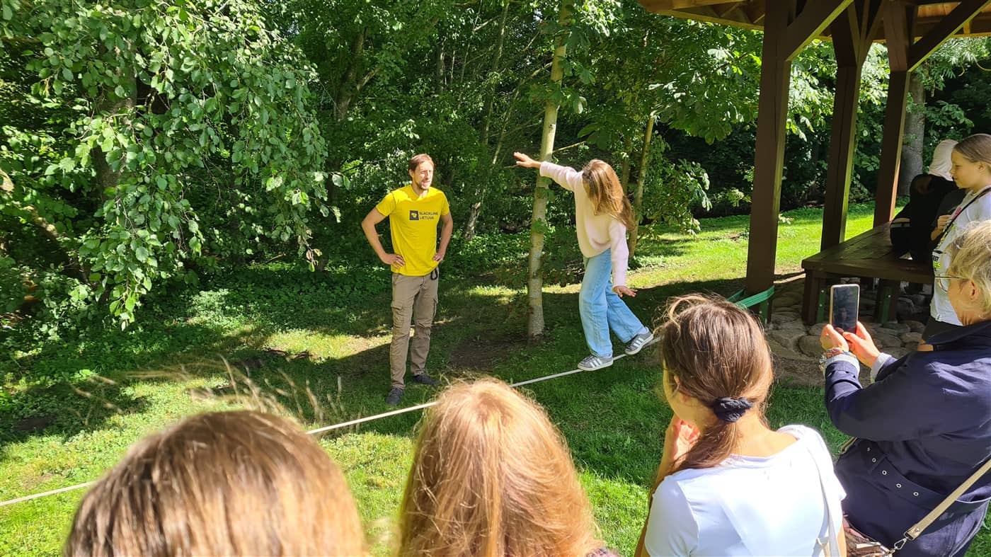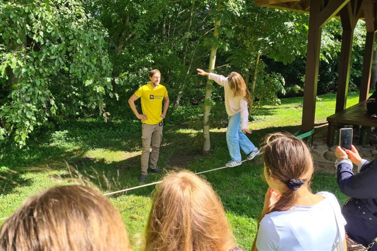 Už šią patirtį ir supažindinimą su neįprasta, tačiau saugia ir itin įtraukiančia sporto bei meno veikla nuoširdžiai dėkojame profesionalių balansuotojų ant juostos „Slackline Lietuva“ komandos atstovui Kęstučiui Žižiui. Ačiū ir visiems dalyviams, kurie nepabūgo iššūkio ir drąsiai žengė ant juostos!