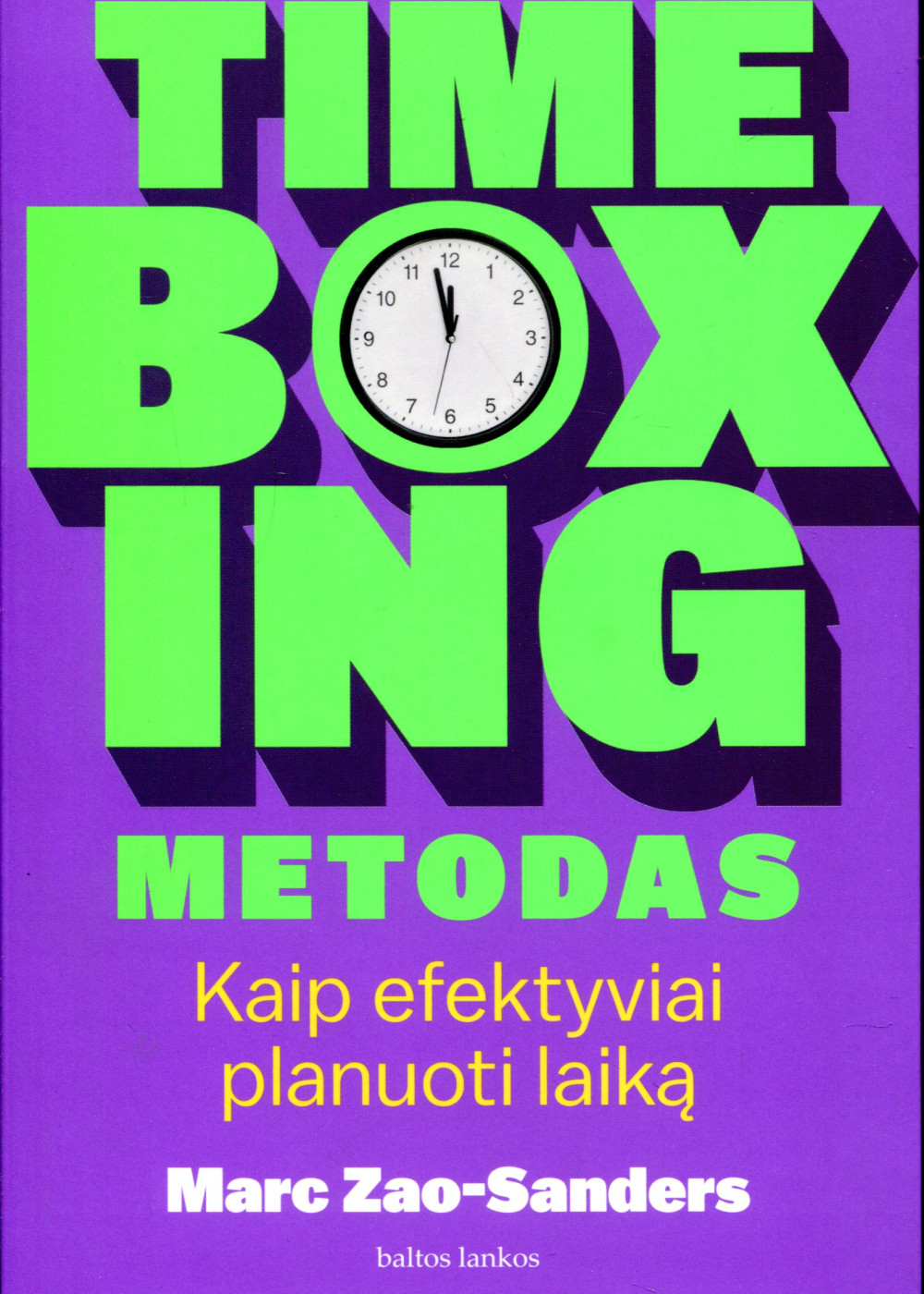 Ar kada jaučiatės taip, tarsi visada būtumėte užsiėmę, nebesuvaldantys darbų ir atsakomybių lavinos? Ar neatrodo, kad jums nuolatos trūksta laiko? „Timeboxing metodas. Kaip efektyviai planuoti laiką“ – tai išsamus vadovas, padėsiantis kruopščiai ir tikslingai pasirinkti kasdienes veiklas, aiškiai nustatant jų pradžios ir pabaigos laiką ir sutelkiant dėmesį tik į vieną užduotį. Tai esminė laiko planavimo praktika, kurią savo kasdieniame gyvenime viena ar kita forma taikė iškiliausi ir produktyviausi mūsų laikų protai – nuo Carlo Jungo ir Alberto Einsteino iki Billo Gateso ir Steve'o Jobso. Knygos autorius Marcas Zao-Sandersas parodo, kad vadinamuoju timeboxing (liet. laiko rėmelių) metodu pagrįstas laiko planavimas yra daugiau nei praktika – tai mąstysena, įgalinanti mus įgyvendinti bet kokius užmojus, pasakyti „ne“ tūkstančiui trikdžių ir „taip“ vienam prioritetui vienu metu, taip savo gyvenimui suteikiant ne tik daugiau produktyvumo, bet ir lengvumo. Įrodyta, kad šis pragmatiškas ir gyvenimą keičiantis atsakingos kasdienės veiklos metodas padeda siekti to, ko labiausiai trokšta beveik kiekvienas žmogus, – sąmoningumu grįsto gyvenimo.