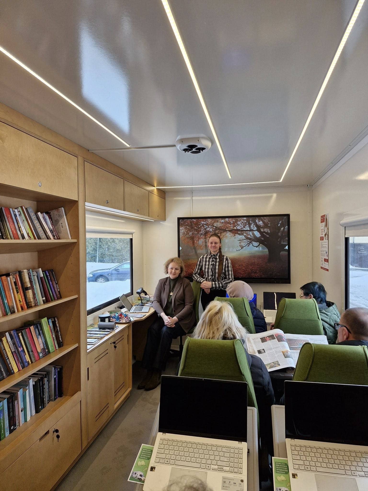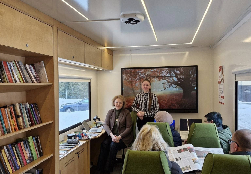 Lankytojai aptarnaujami bibliobuse, kuris nuvažiuoja į 21 Pasvalio rajono kaimą.
