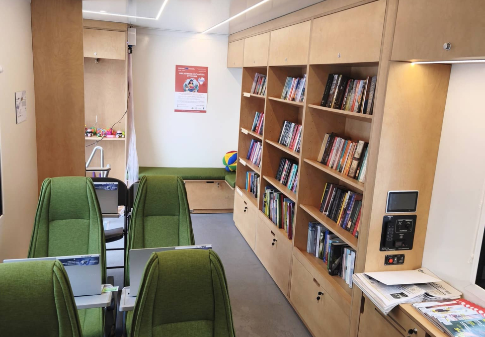 Biblioteka ant ratų nuvyksta į mokyklas, darželius, stacionarias bibliotekas ir kt. Lankytojai susipažįsta su mobilia biblioteka, dalyvauja renginiuose.
