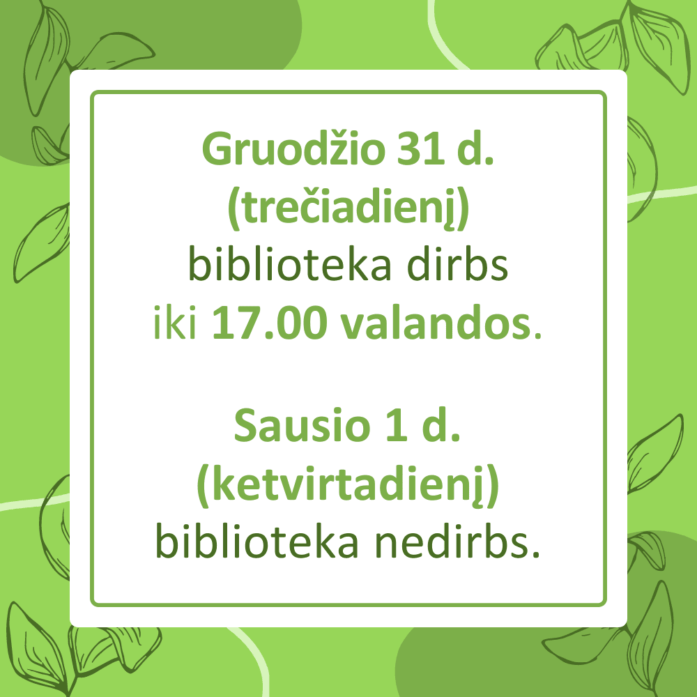 Bibliotekos darbo laikas gruodžio 31 dieną