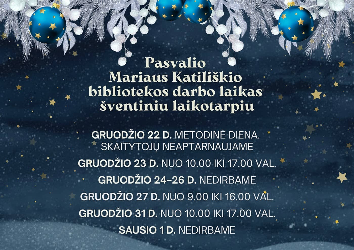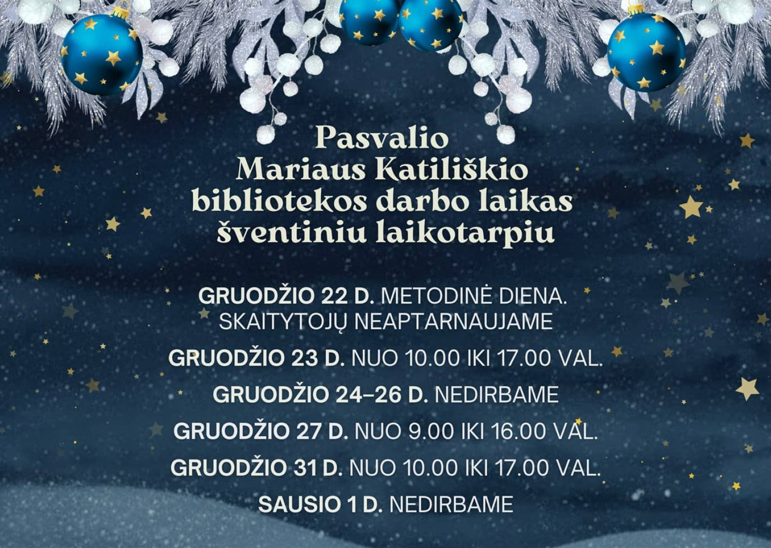 Bibliotekos darbo laikas šventiniu laikotarpiu: