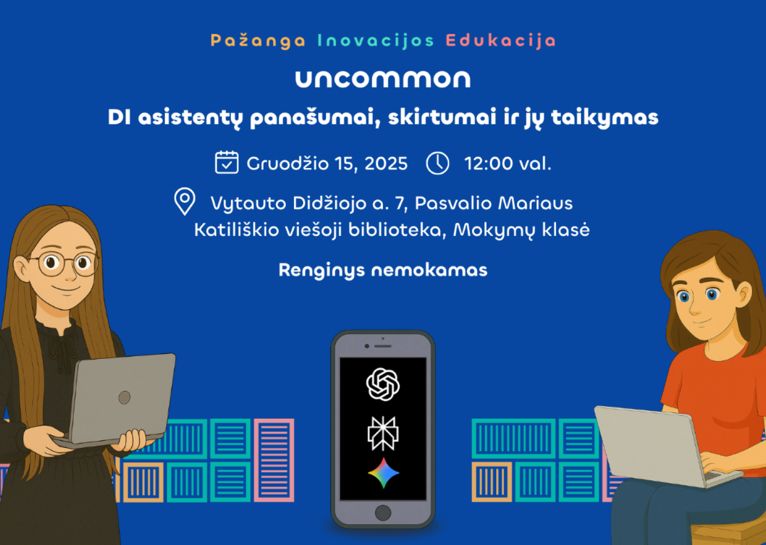 Ar kada susimąstei, kiek laiko galėtum sutaupyti naudojant DI paieškos asistentus? O gal jau bandei, bet neradai sau tinkamo? Nepriklausomai nuo amžiaus, dirbtinis intelektas yra įrankis, kuriuo lengva, įdomu ir naudinga naudotis. Kviečiame visus, kurie nori sužinoti, kas yra DI asistentai ir kaip jie gali padėti kasdienybėje.