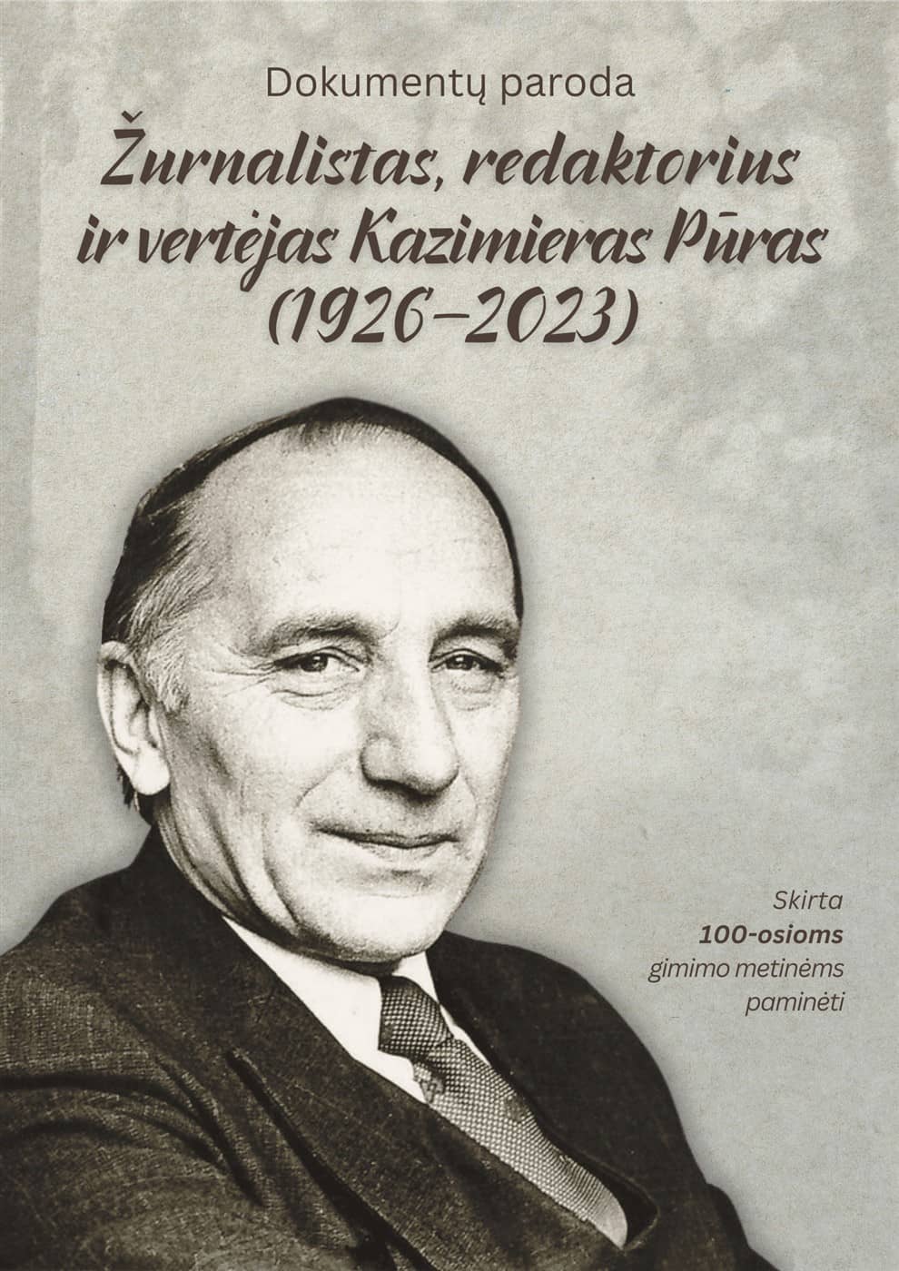 Maloniai kviečiame aplankyti dokumentų parodą „Žurnalistas, redaktorius ir vertėjas Kazimieras Pūras (1926–2023)“.