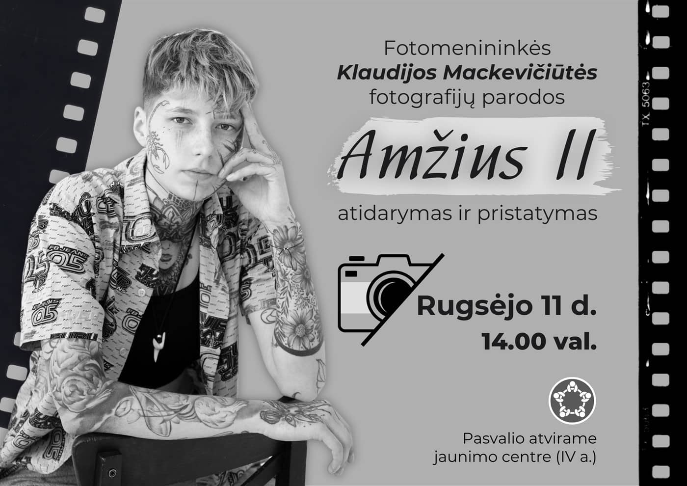 Rugsėjo 11 d., ketvirtadienį, 14 val. Pasvalio atvirame jaunimo centre (IV a.) vyks fotomenininkės Klaudijos Mackevičiūtės parodos „Amžius II“ atidarymas ir pristatymas.