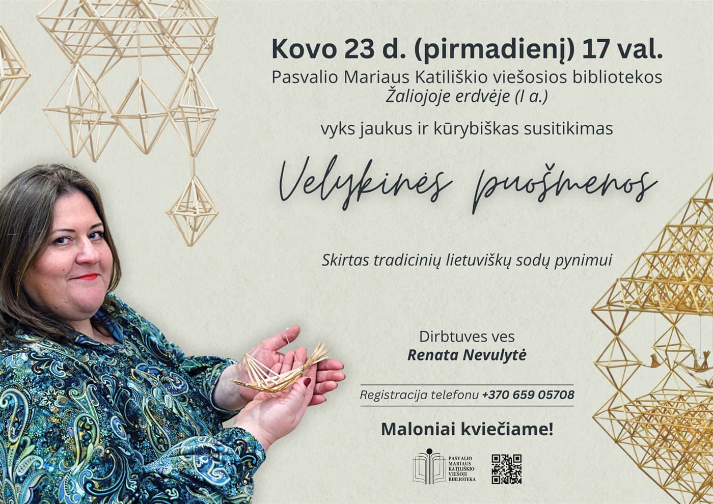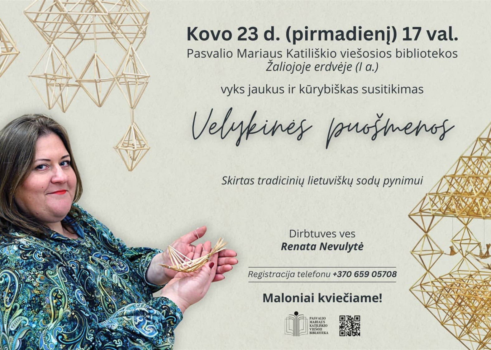Kovo 23 d. (pirmadienį) 17 val. Pasvalio Mariaus Katiliškio viešosios bibliotekos Žaliojoje erdvėje (I a.) vyks jaukus ir kūrybiškas susitikimas „Velykinės puošmenos“.