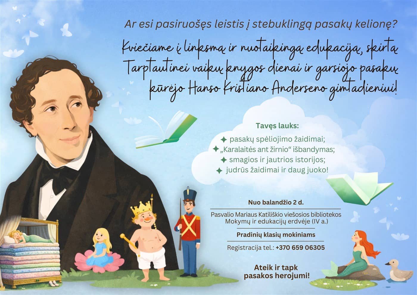 Kviečiame į linksmą ir nuotaikingą edukaciją, skirtą Tarptautinei vaikų knygos dienai ir garsiojo pasakų kūrėjo Hanso Kristiano Anderseno gimtadieniui!
