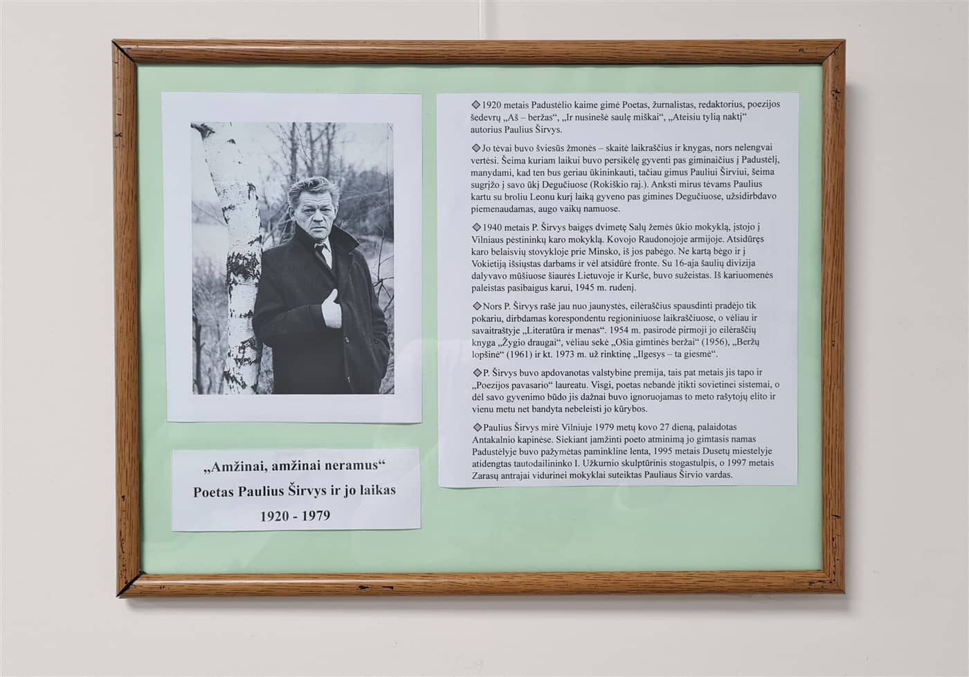 Skirta poeto Pauliaus Širvio (1920–1979) 105-osioms gimimo metinėms paminėti.