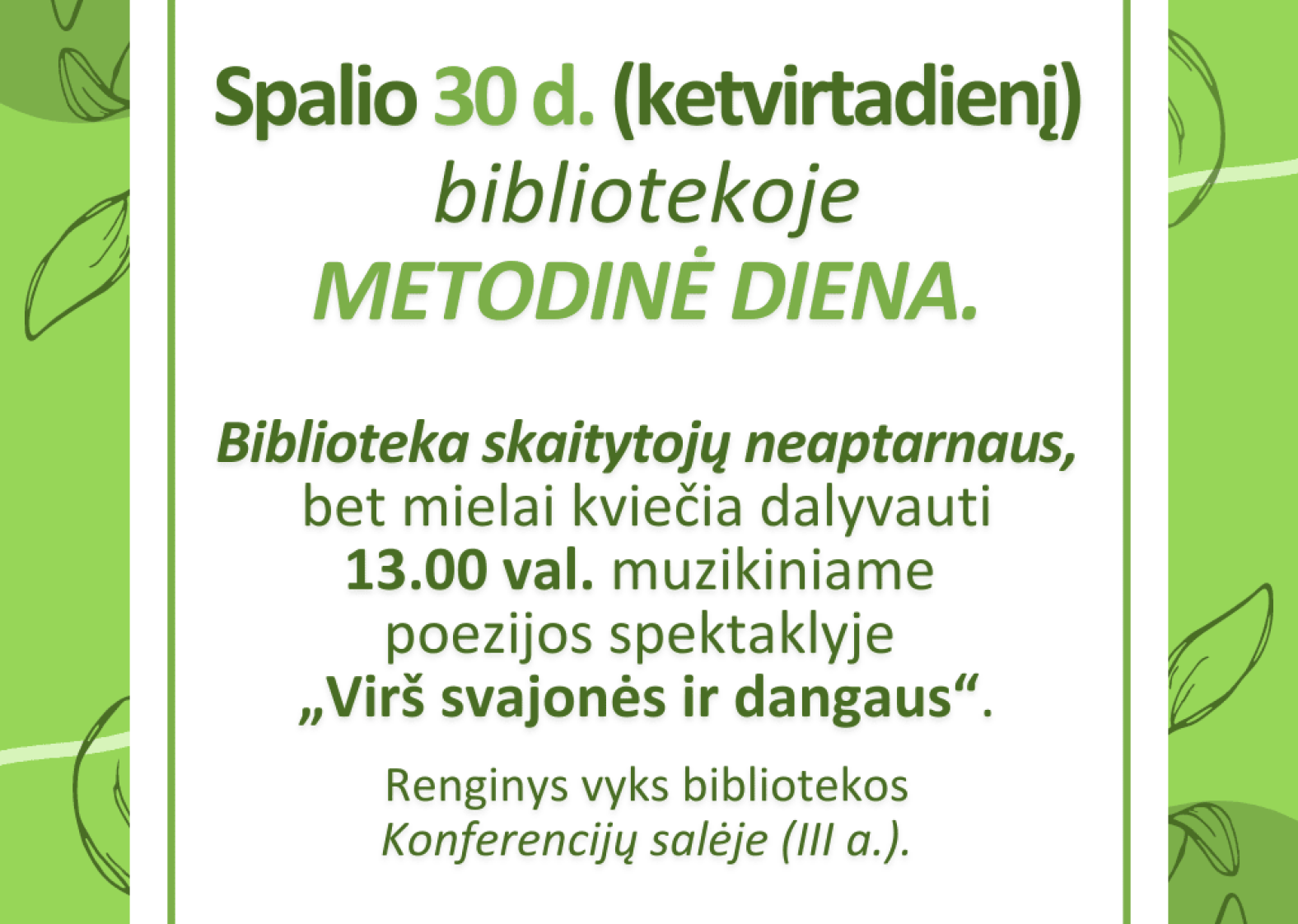 Spalio 30 dieną (ketvirtadienį) bibliotekoje METODINĖ DIENA.