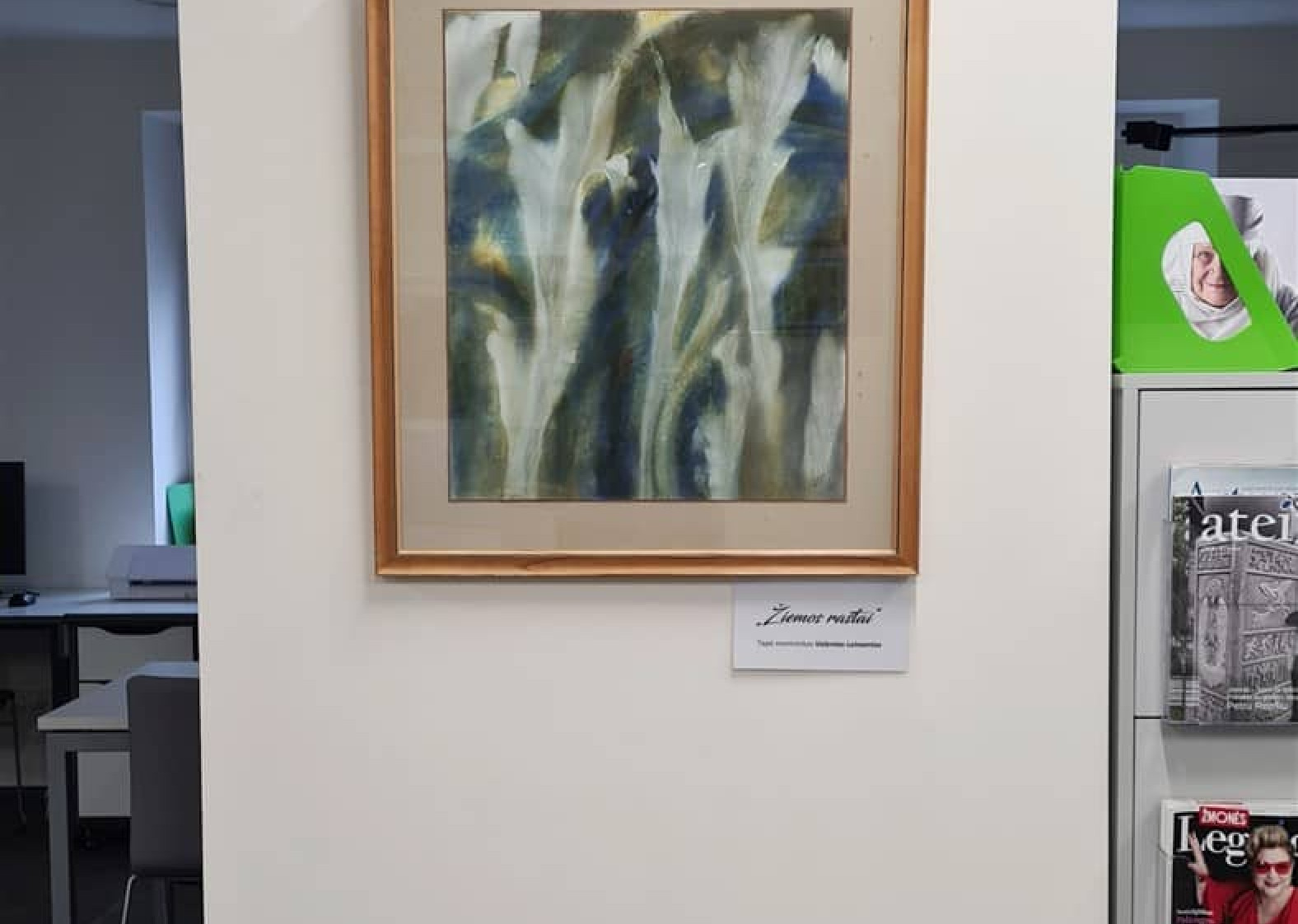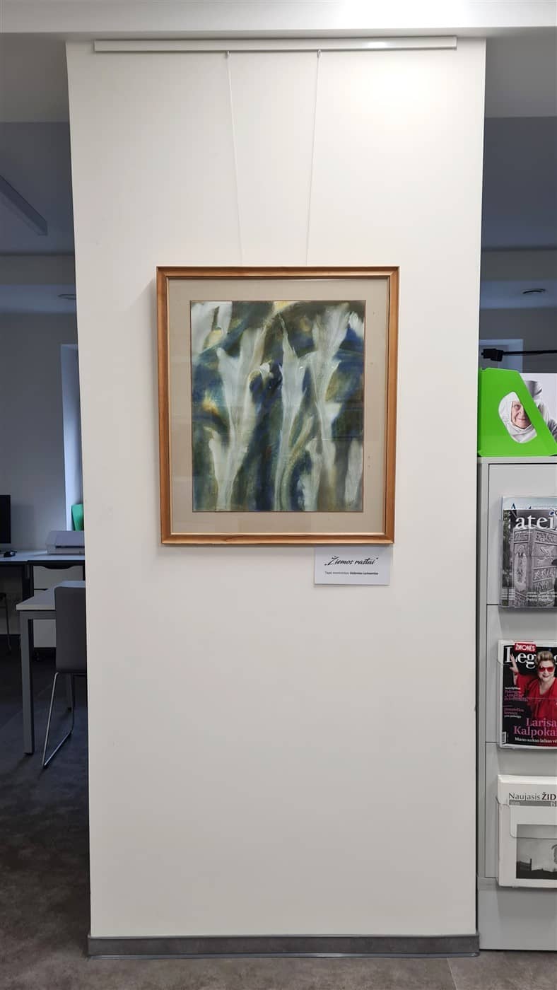 Bibliotekos „Mono arba stereo“ erdvėje (II a.) eksponuojama vieno paveikslo paroda, kurioje – kraštiečio dailininko Valento Leimonto tapybos darbas „Žiemos raštai“