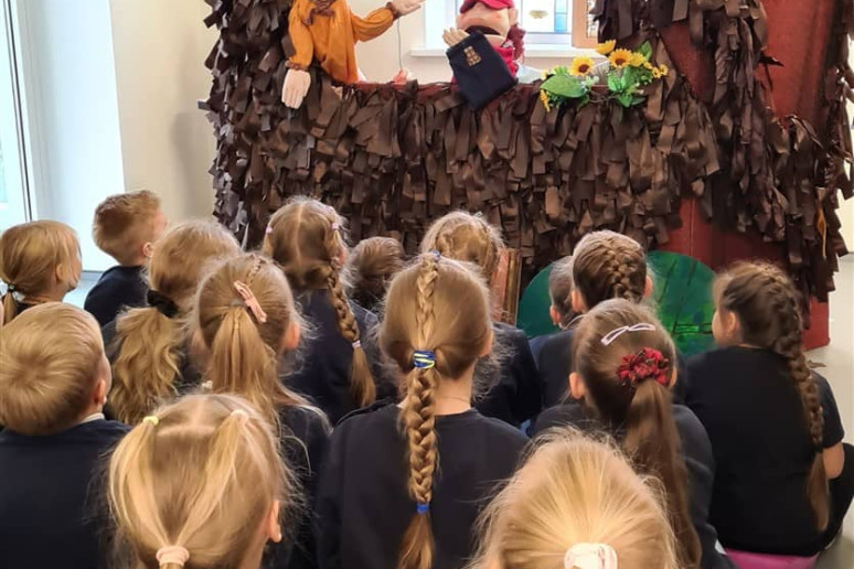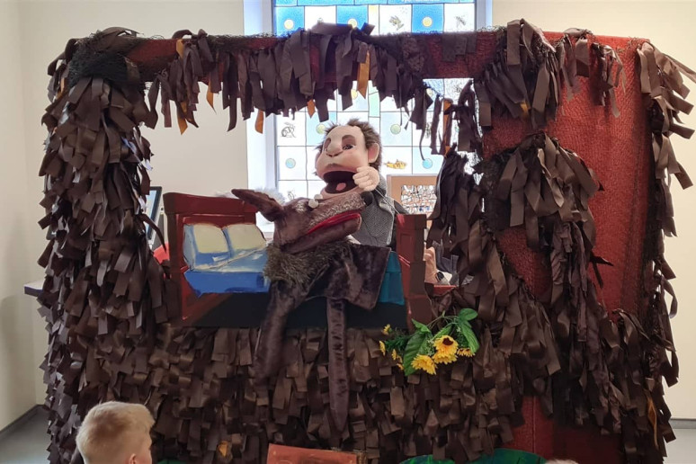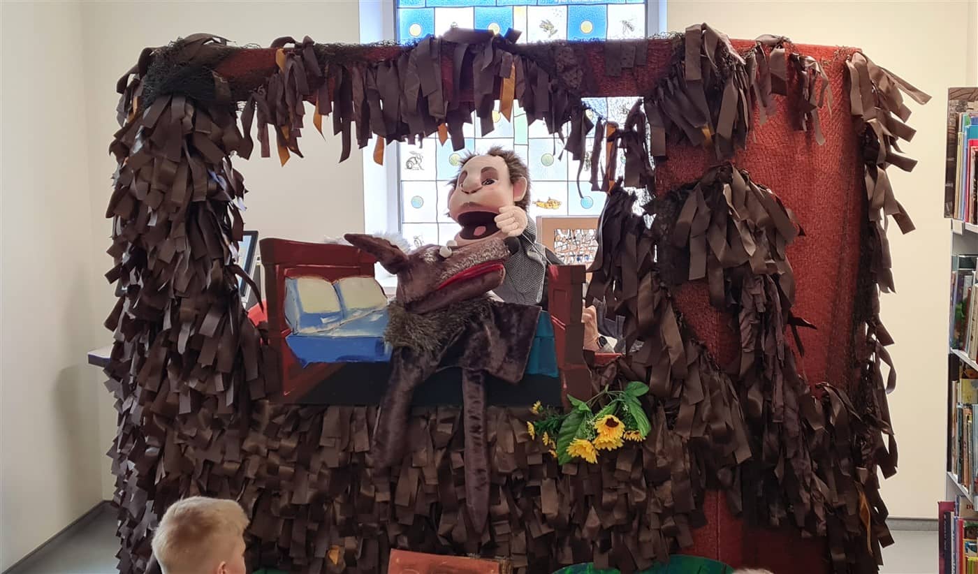 Darbuotojos Lijana ir Dalia svečiams taip pat įgarsino Šarlio Pero pasaką „Raudonkepuraitė“ – ją skaitė ir vaidino, pasitelkdamos vaizdines priemones: specialiai bibliotekos teatro studijai „Kaukutis“ siūtas teatrines lėles (Raudonkepuraitę, mamą, senelę, vilką ir medžiotoją) bei kitas dekoracijas.