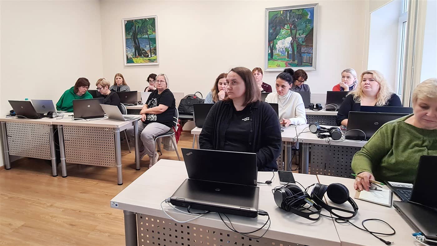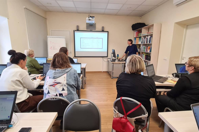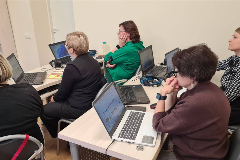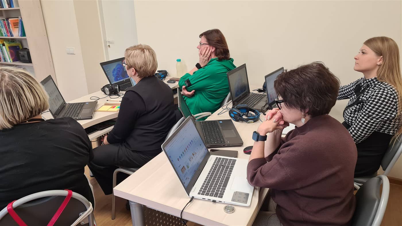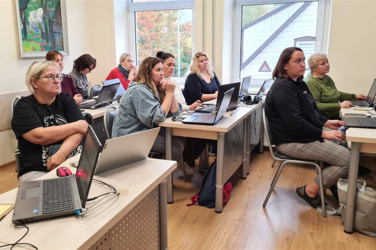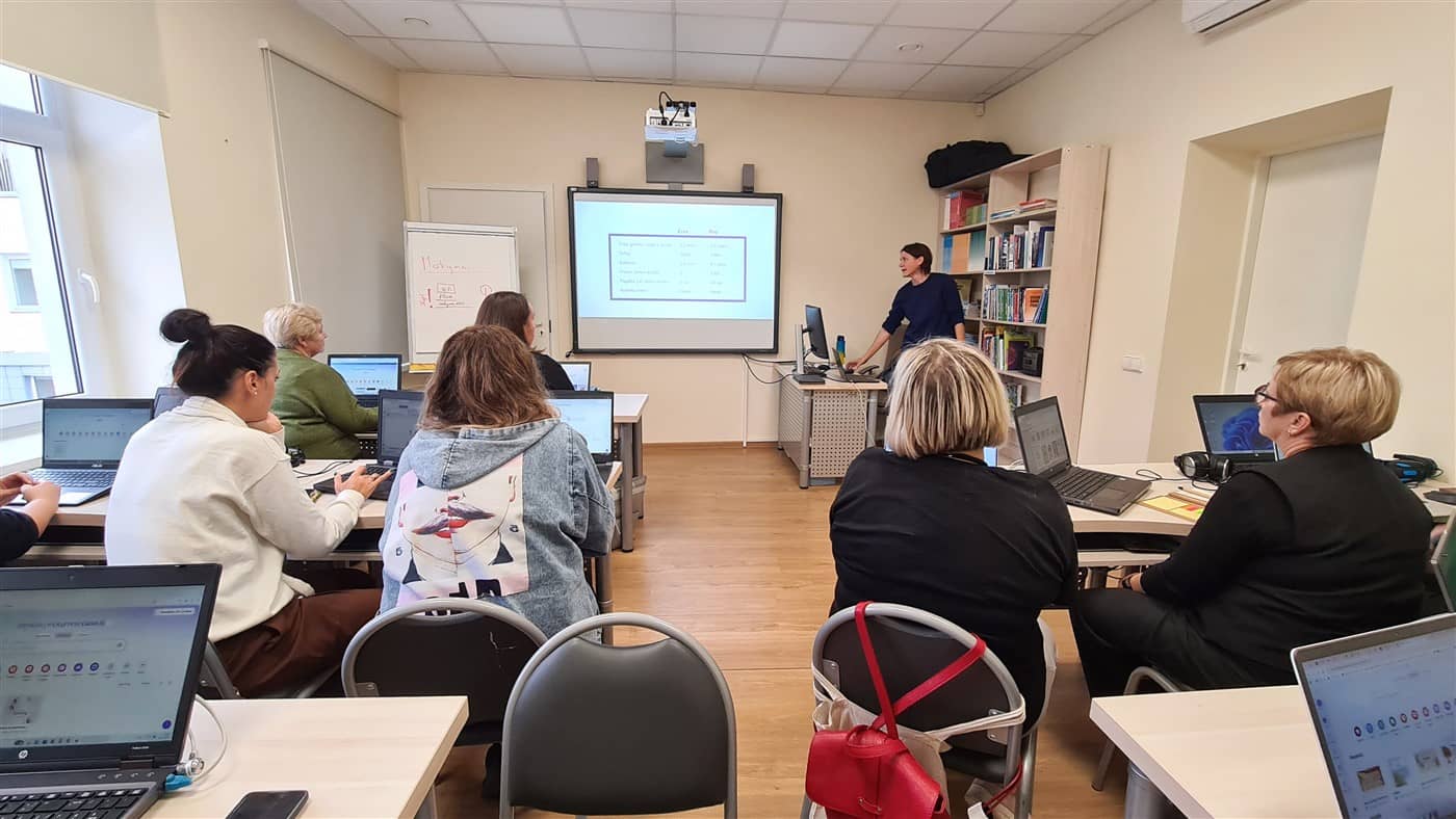 Lektorė supažindino dalyves su „Canva“ programos pagrindais, pristatė jos privalumus ir praktiškai parodė, kaip kurti patrauklius plakatus, skrajutes bei kitus vizualinius kūrinius. Mokymuose dalyvės turėjo galimybę išbandyti įvairias dizaino priemones, gauti naudingų patarimų ir pasisemti kūrybinių idėjų, kurias galės pritaikyti savo veikloje.