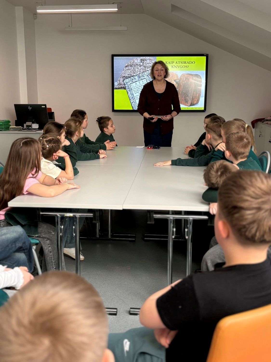 „Kaip atsirado knyga“ – bibliotekos Vaikų erdvės rengiama edukacija 3–5 klasių mokiniams, kurioje vaikai, dalyvaudami interaktyviame žaidime, mokosi gaminti knygą, kaip viduramžių skriptoriai ir knygrišiai.