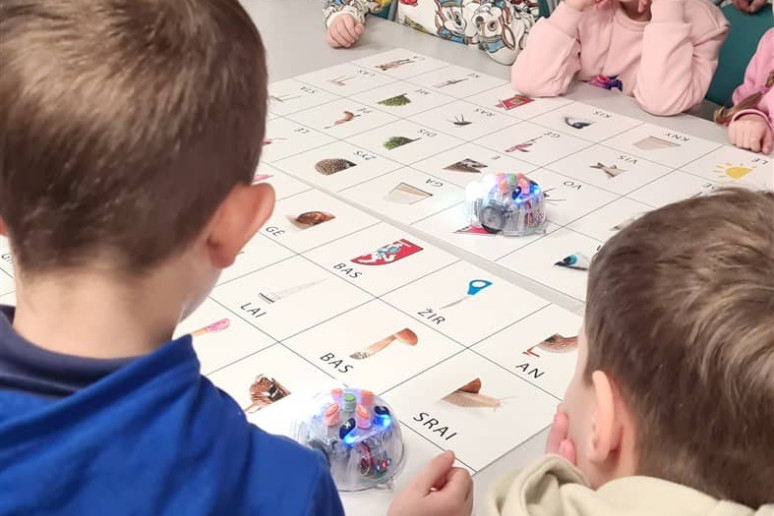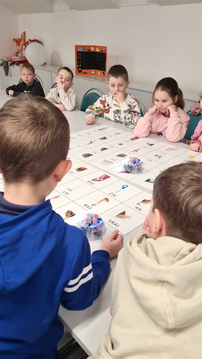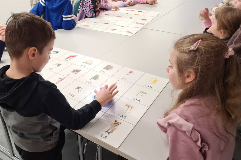 Mažuosius sudomino užduotys su edukacinėmis bitutėmis. Vaikai ieškojo išdėstytų paveikslėlių su skiemenimis ir jungė į žodžius.