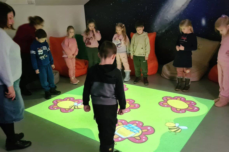 Vėliau vaikai žaidė interaktyviųjų grindų ir kitus žaidimus.Kodas 190626161