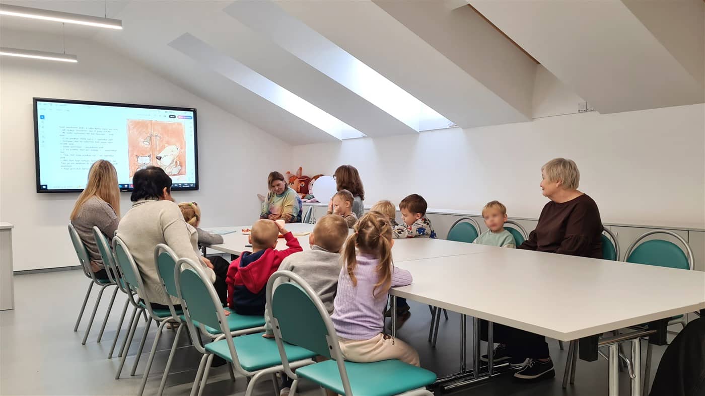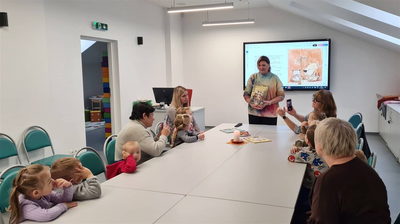 Ta proga mūsų bibliotekos Mokymų ir edukacijų erdvėje vyko dailininko ir rašytojo Bárðuro Oskarssono paveikslėlių knygos „Ein hundur, ein ketta og ein mús“ („Šuo, katė ir pelė“) ištraukos garsinis skaitymas. Ištrauką skaitė, su renginiu supažindino Vaikų erdvės darbuotoja Dalia Šedienė. Dalyvavo Pasvalio lopšelio-darželio „Žilvitis“ vaikai ir juos atlydėjusios auklėtojos.