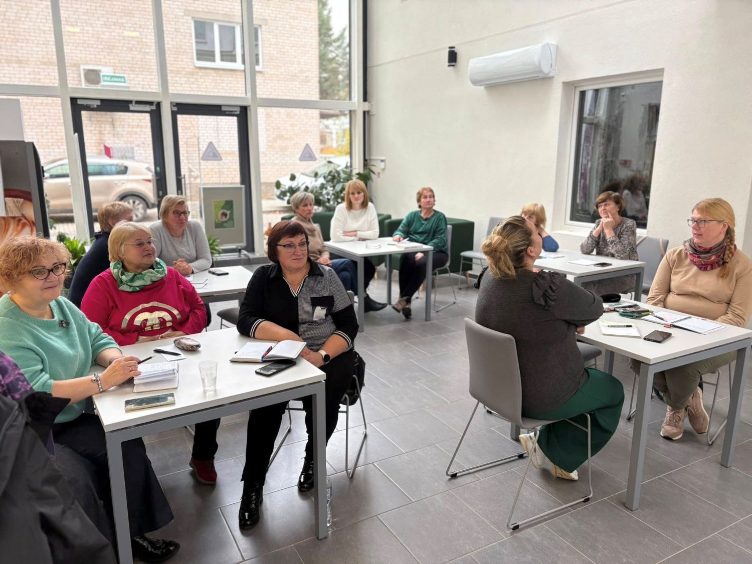 Spalio 28 dieną mūsų bibliotekos padalinių darbuotojai dalyvavo projekto „INCLUSIVE“ mokymų apie darbą su senjorų tiksline grupe tęsinyje, mokymuose „Darbas su vyresnio amžiaus žmonėmis: gyvenimo pokyčiai, praktinė komunikacija, edukacinės priemonės, mokymasis ir technologijos“, kuriuos vedė Vilniaus universiteto Psichologijos instituto asistentė dr. Viktorija Azuma.