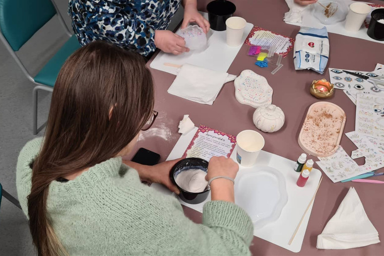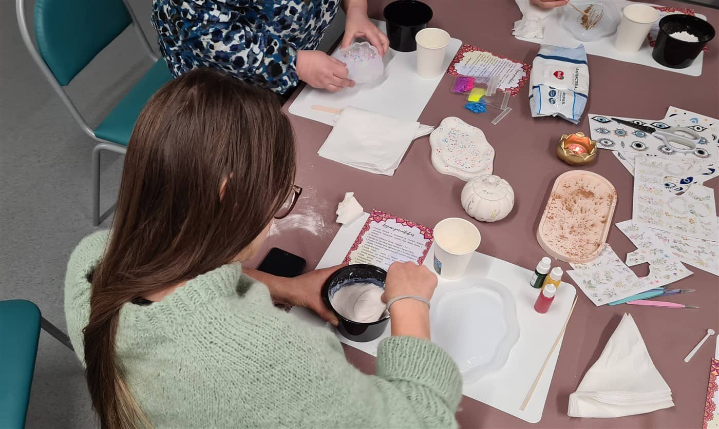 Lapkričio 21 dieną bibliotekos Mokymų ir edukacijų erdvėje vyko kūrybinės dirbtuvės „Mineralinės dervos padėkliukai“, kurias vedė Rūta Giedrikienė.