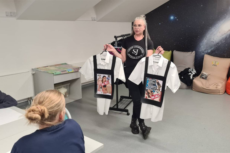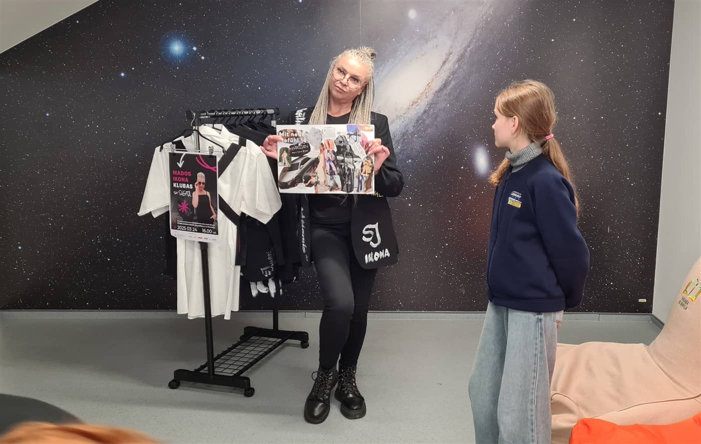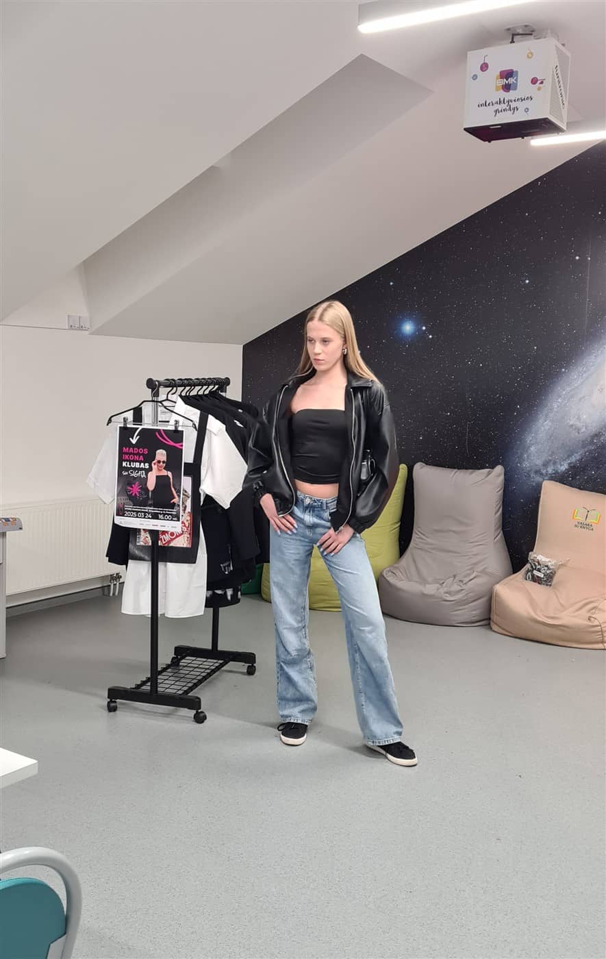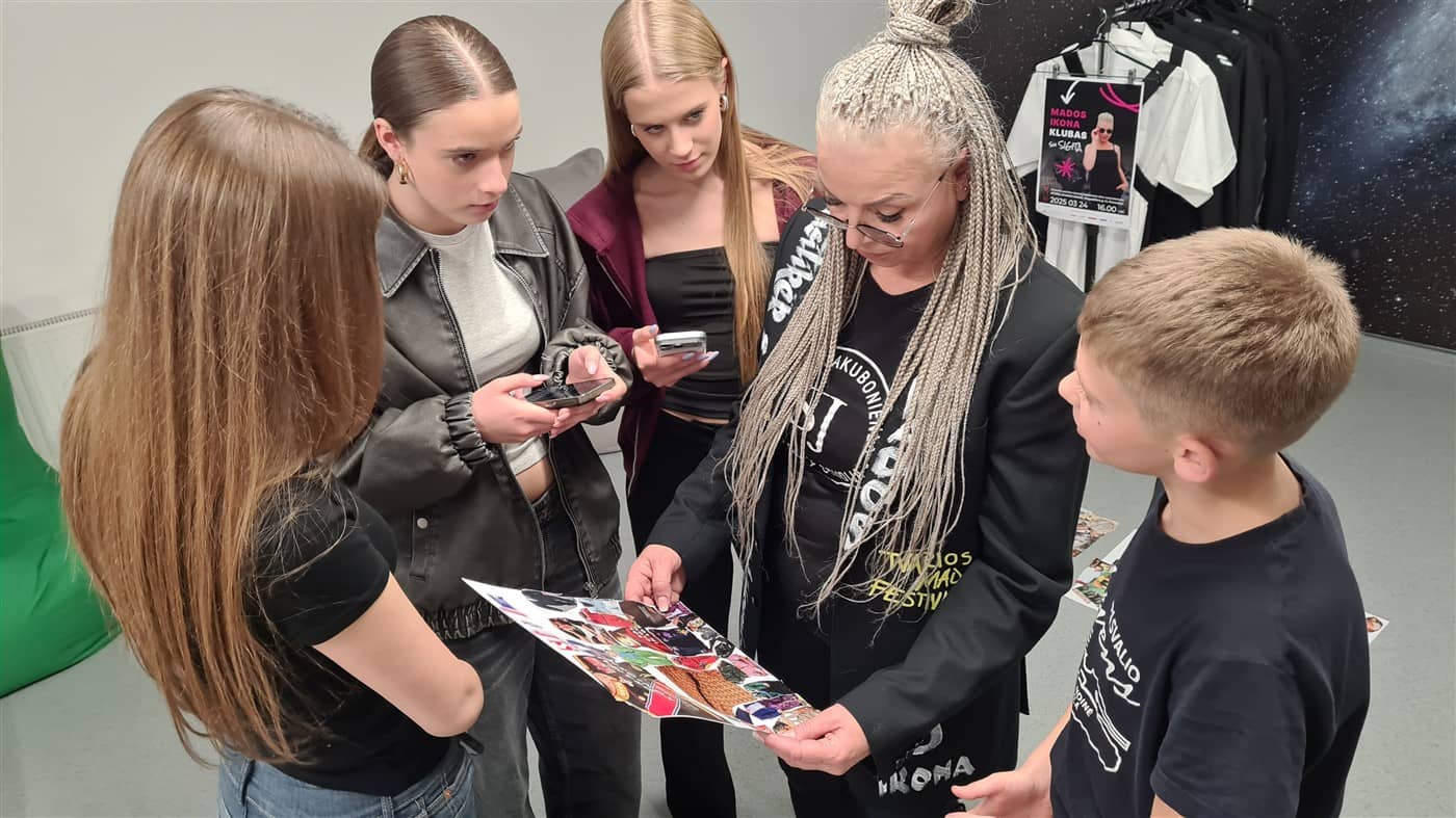Vėliau kūrybinį iššūkį priėmė ir patys moksleiviai. Edukatorė jiems pateikė užduotį – sukurti tris stilius: gatvės, dalykinį ir proginį, kurie atspindėtų jų draugų ar kitų pasirinktų žmonių asmenybes. Visi šie įvaizdžiai buvo pristatyti gyvai – juos pademonstravo SJ modelių studijos modeliai Viltė, Mėta ir Andrėja.