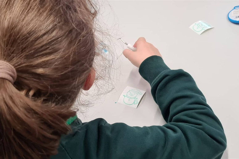 Bibliotekos darbuotojos Vaida ir Karolina supažindino vaikus su lipdukų gamybos procesu. Dalyviai stebėjo, kaip idėjos virsta realiais gaminiais, o vėliau patys atspausdintus lipdukus paruošė klijavimui. Tai buvo įdomi patirtis, leidusi iš arčiau pažinti kūrybinių technologijų pasaulį.