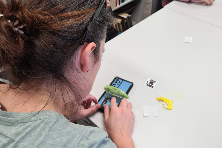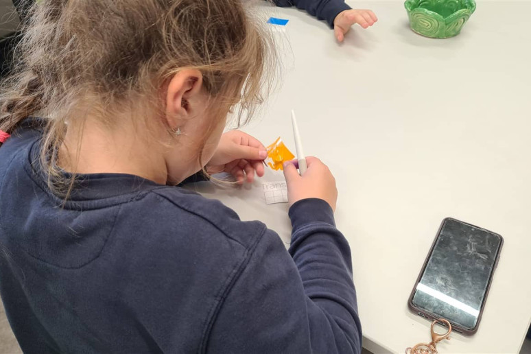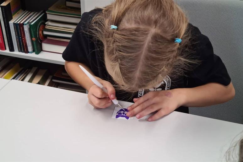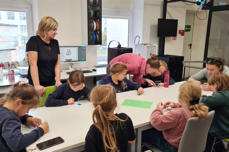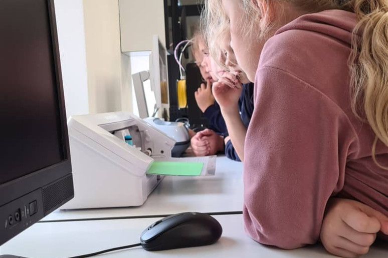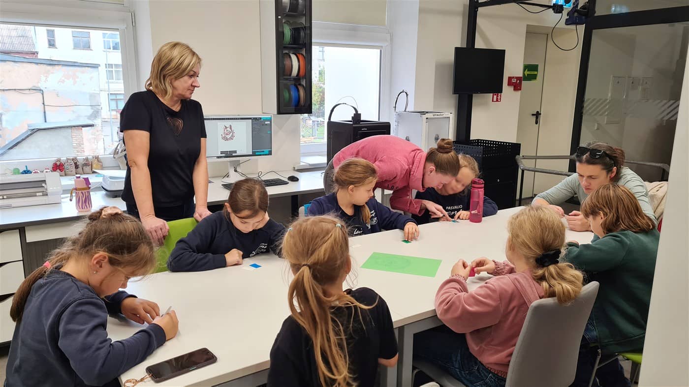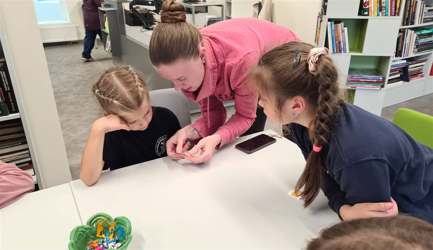 Bibliotekos darbuotojos Vaida ir Karolina šį kartą supažindino vaikus su lipdukų gamybos procesu. Dalyviai stebėjo, kaip idėjos virsta realiais gaminiais, o vėliau patys išbandė įrangą ir pasirinko norimus lipdukų dizainus. Tai buvo įdomi patirtis, leidusi iš arčiau pažinti kūrybinių technologijų pasaulį.