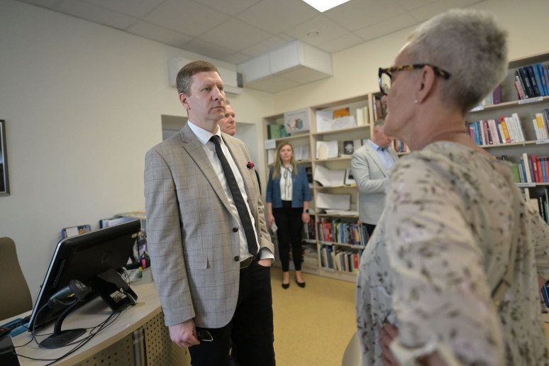 Kultūros ministras pažintį su biblioteka pradėjo nuo Mariaus Katiliškio atminimo kambario, aplankė Atvirą jaunimo centrą, Kvapų ir ramybės kambarį, Vaikų erdvę, Garso ir vaizdo įrašų studiją, Knygų ir kitas erdves. Bibliotekos darbuotojai pasakojo apie bibliotekos teikiamas paslaugas, edukacijas, užsiėmimus ir renginius.