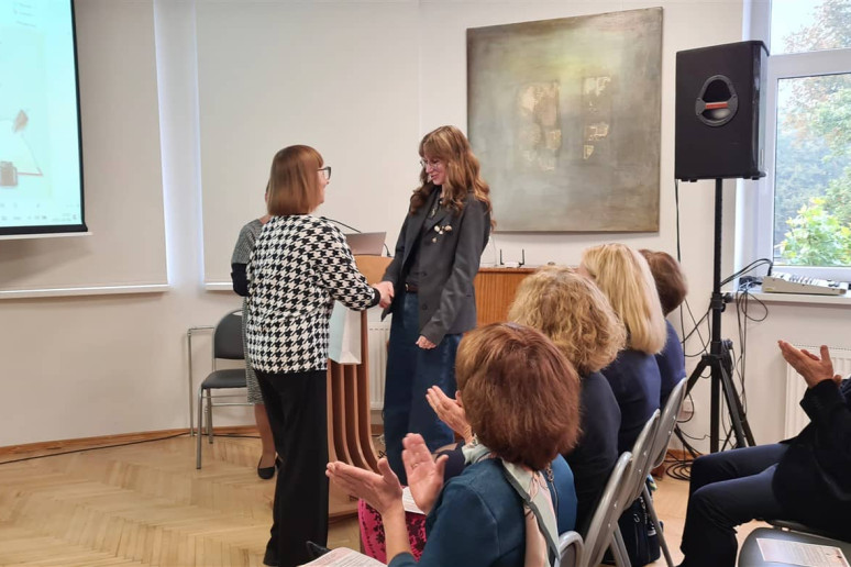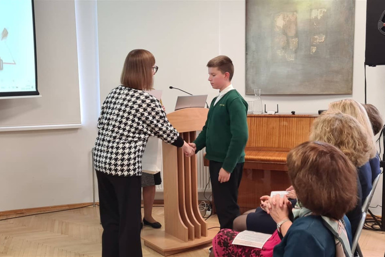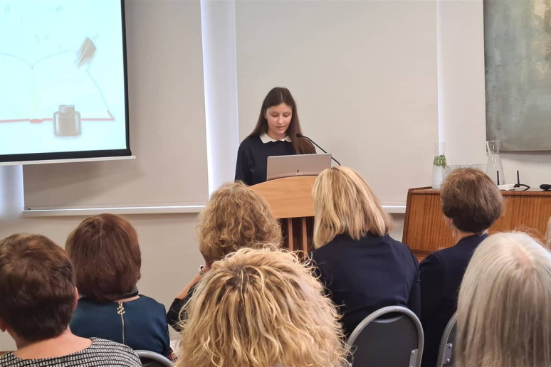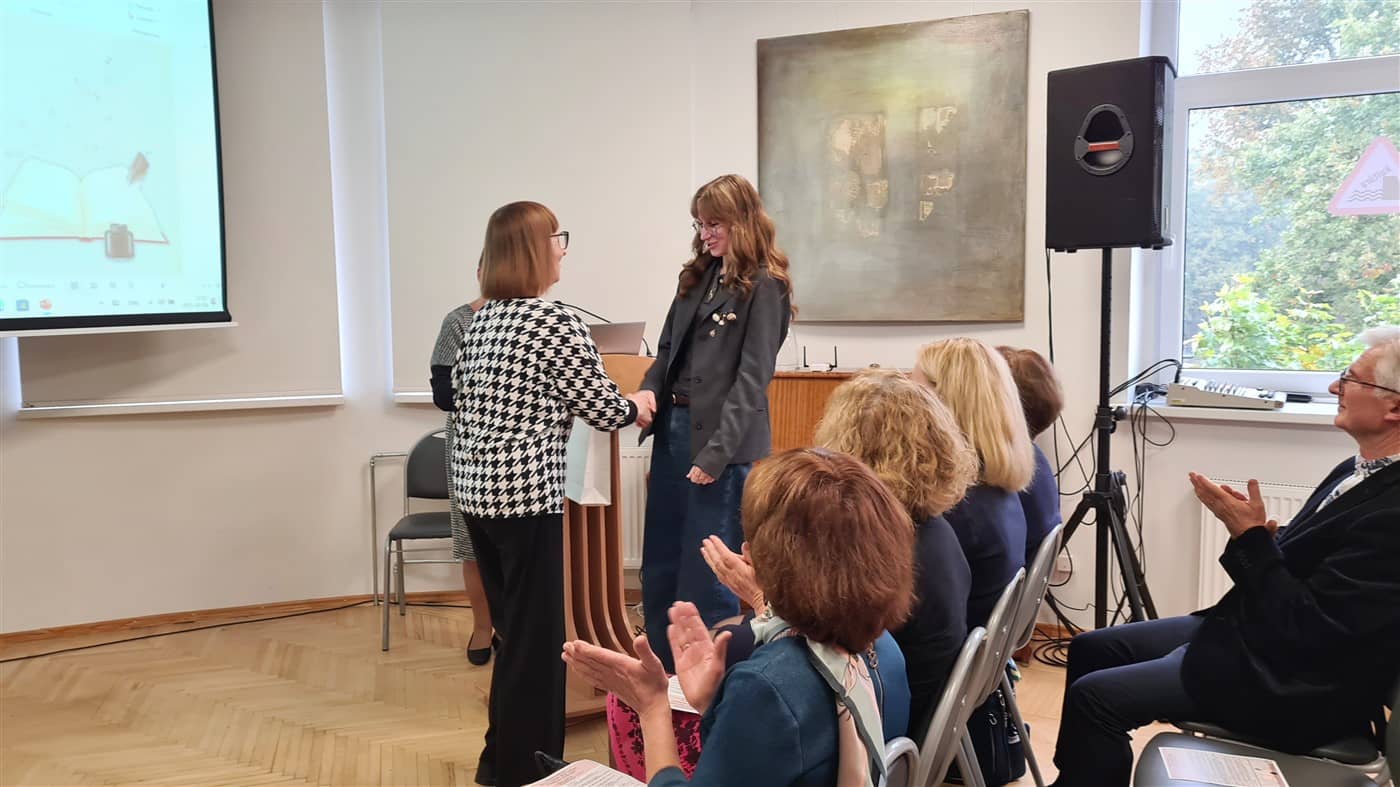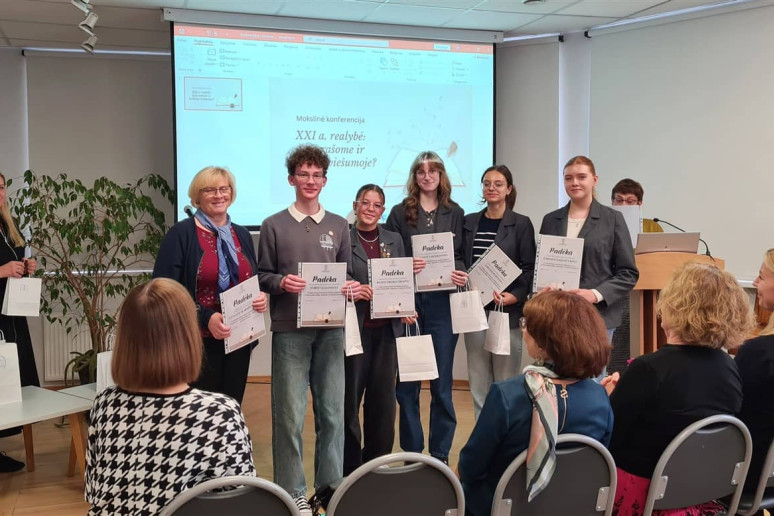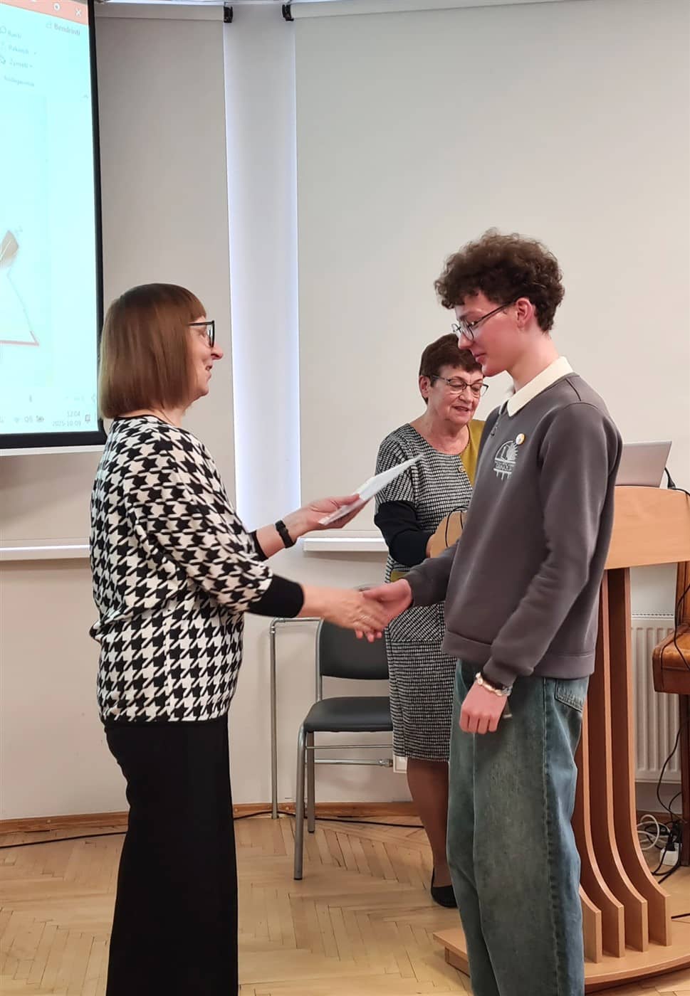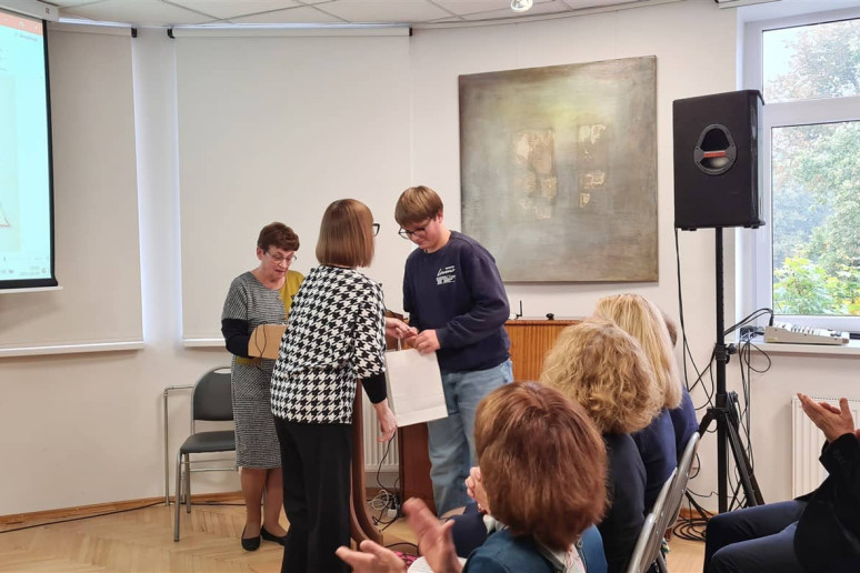 Pirmojoje konferencijos dalyje taip pat vyko minėto konkurso „Viešoji mūsų kalba: sakytinės ir rašytinės formos“ apibendrinimas ir laimėtojų apdovanojimai. Moksleivių darbus apžvelgė Lietuvių kalbos draugijos Pasvalio Petro Būtėno skyriaus narė Laimutė Vaitkevičienė.