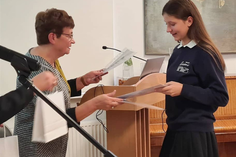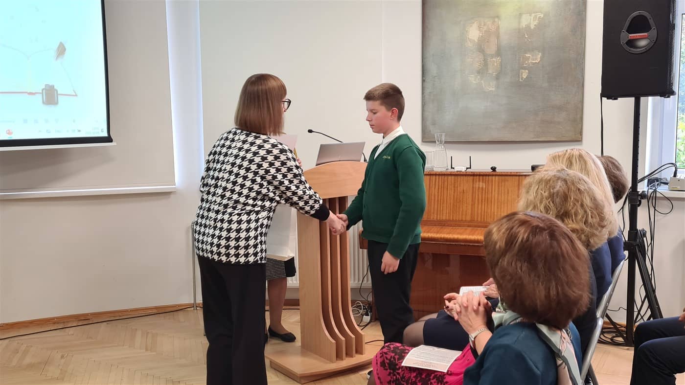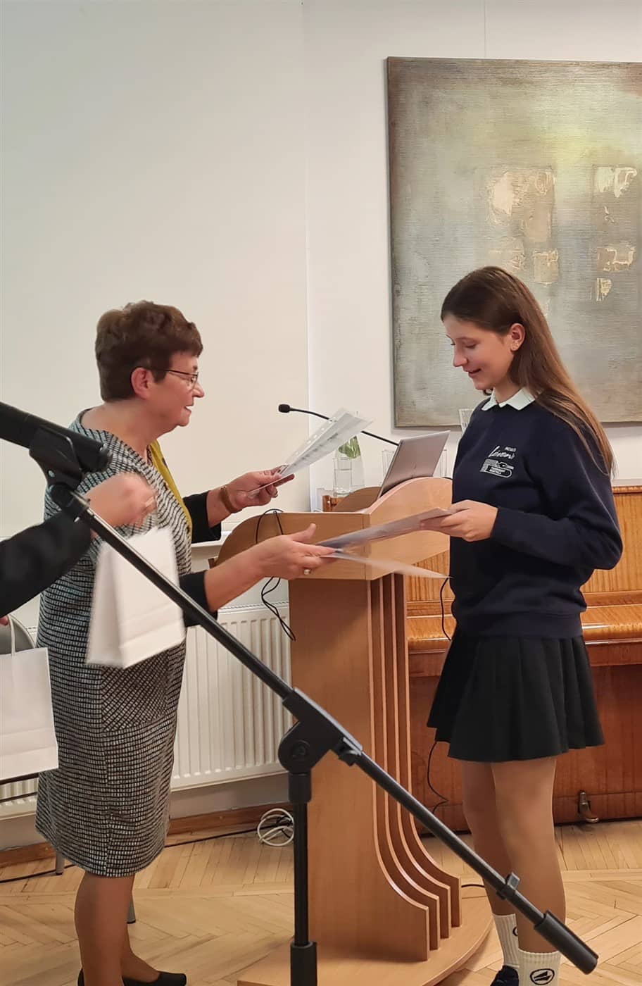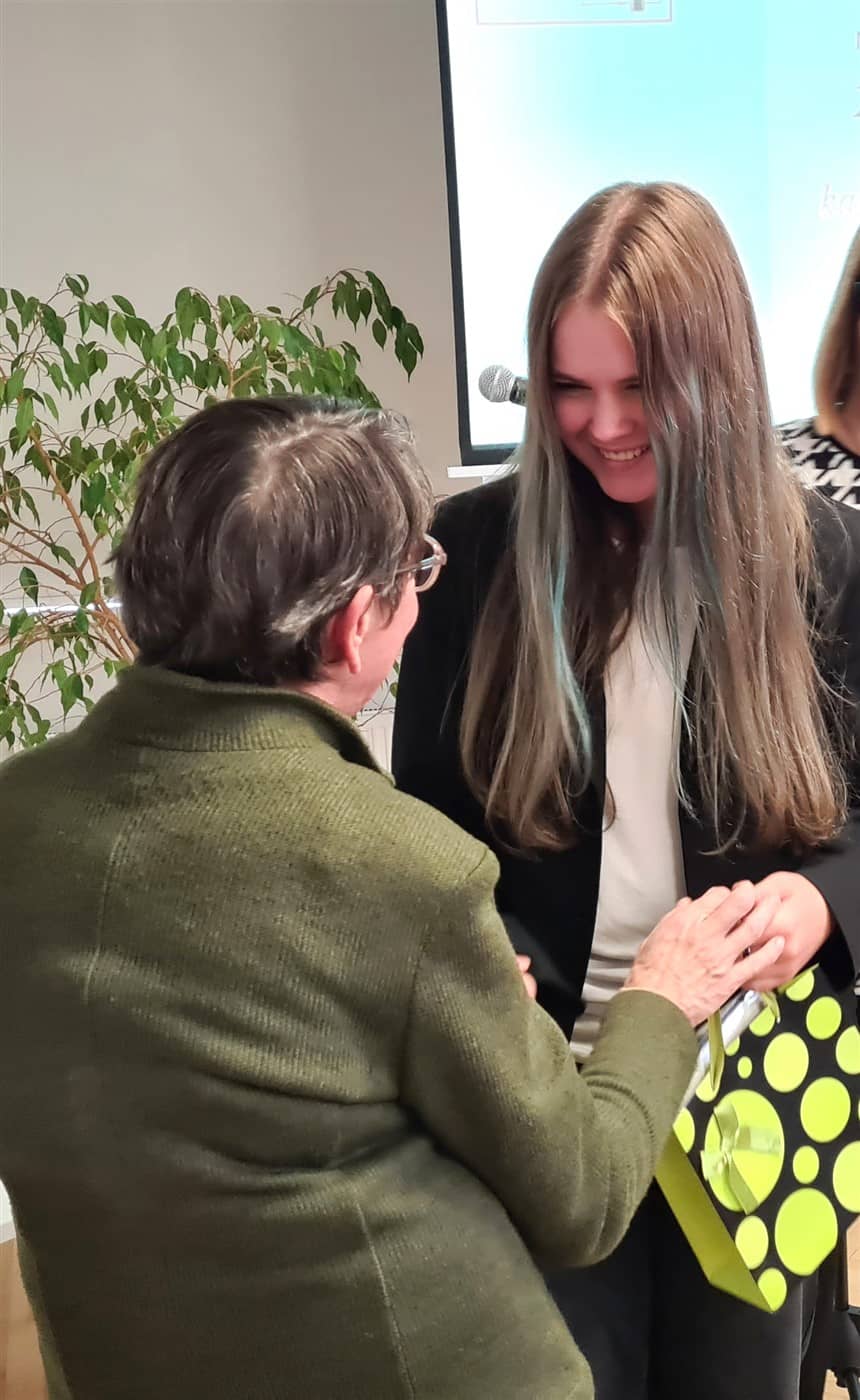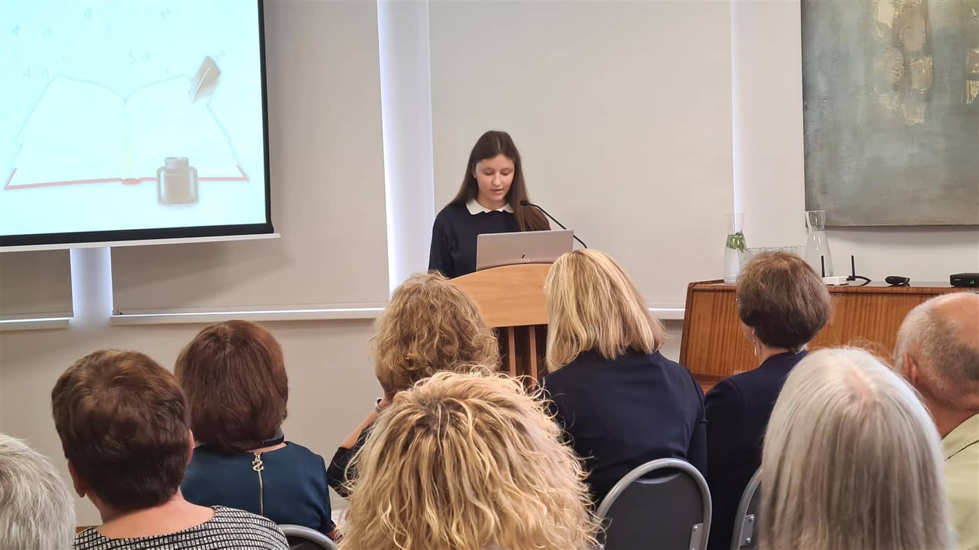 Pirmojoje konferencijos dalyje taip pat vyko minėto konkurso „Viešoji mūsų kalba: sakytinės ir rašytinės formos“ apibendrinimas ir laimėtojų apdovanojimai. Moksleivių darbus apžvelgė Lietuvių kalbos draugijos Pasvalio Petro Būtėno skyriaus narė Laimutė Vaitkevičienė.