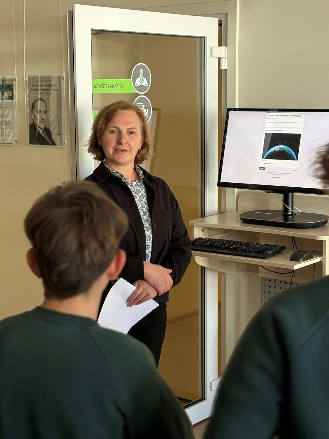 Artėjant Nacionalinei Lietuvos bibliotekų savaitei mokiniai taip pat susipažino su interaktyvia paroda „Knyga ir eteris šiandienos informacijos srautuose“, kviečiančia susimąstyti apie knygų vertę ir „amžinąją mintį“ šiandienos triukšme.