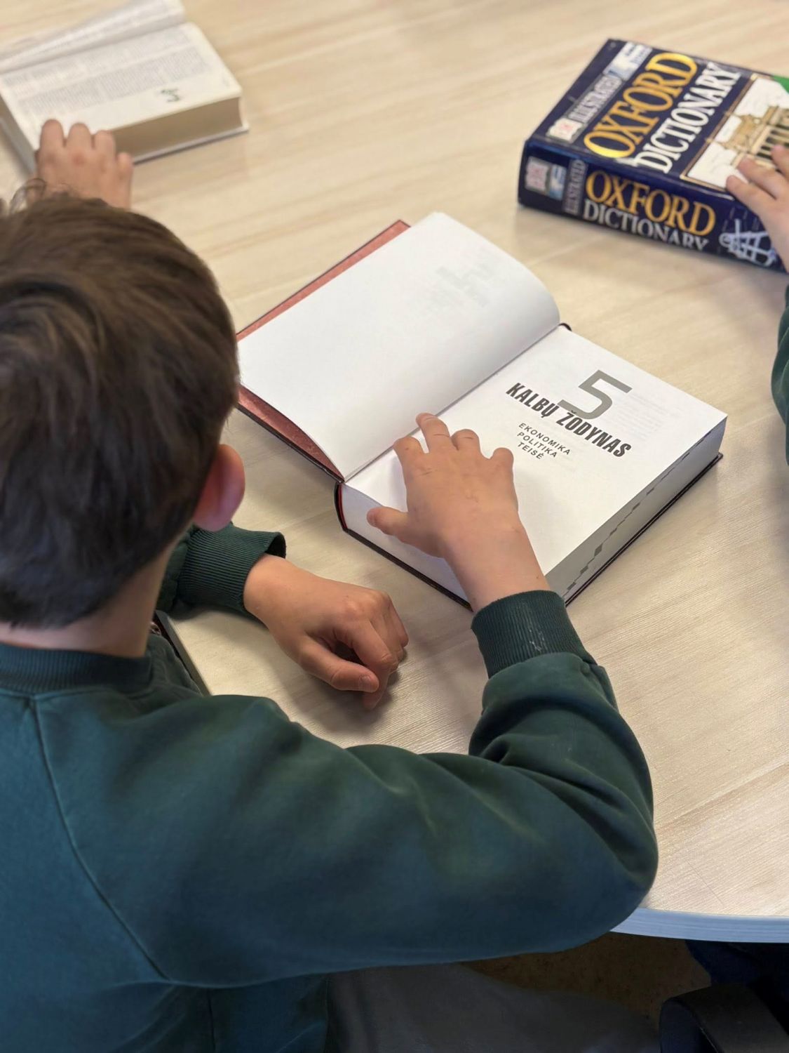 Pamokos pabaigoje vaikų laukė kūrybinė užduotis „Žodžio istorijos detektyvai“ – jie ieškojo šimtmečius gyvuojančių žodžių, kūrė jų „pasus“ ir leidosi į smagią kalbos pažinimo kelionę.