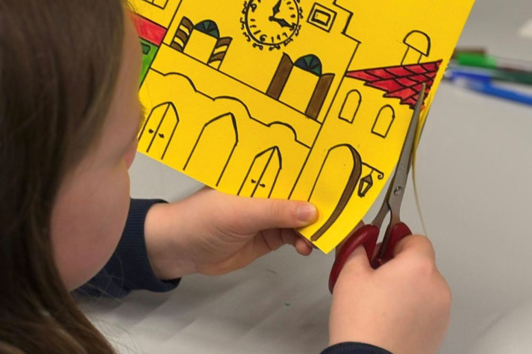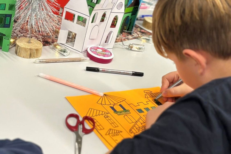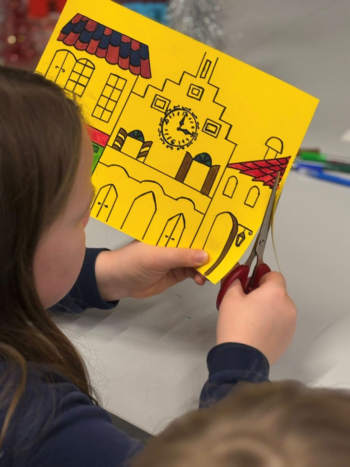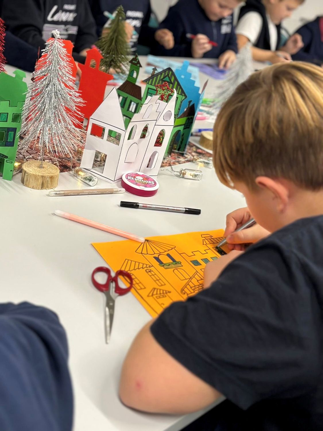 Edukacijos pabaigoje, kiekvienas nuspalvino ir išsikarpė savo popierinį namelį.
