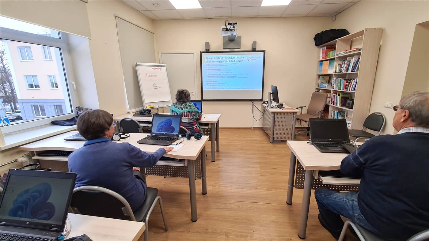 Lapkričio 24, 26 ir 27 d. bibliotekos Mokymų klasėje vyko projekto „Prisijungusi Lietuva“ mokymai „Skaitmeninių įgūdžių tobulinimas“.